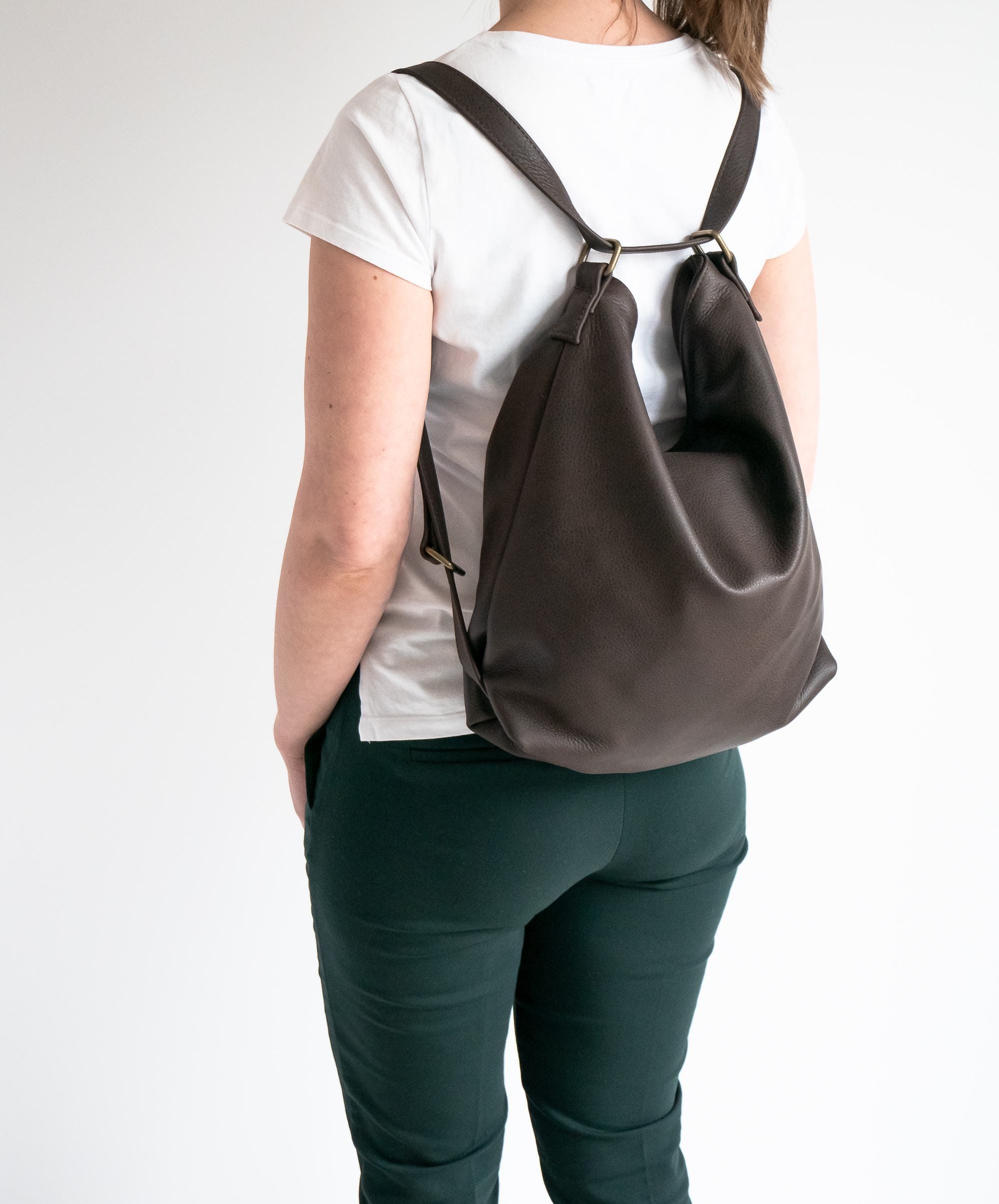 Dark Brown CONVERTIBLE Backpack, Shoulder Bag, Brown Leather Hobo B...