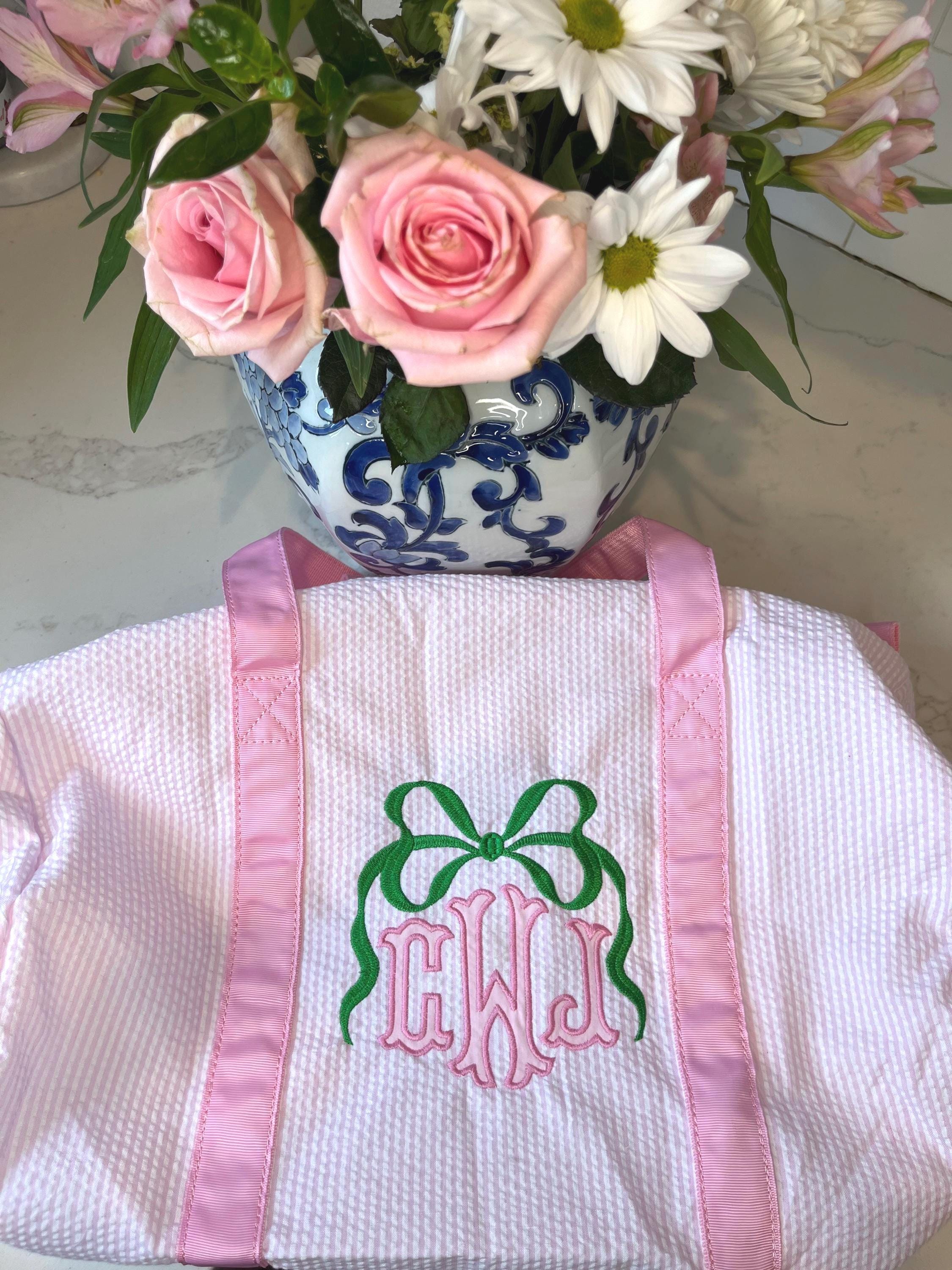 Monogrammed Seersucker Duffel Bag, Personalized Child's Duffel Bag,...