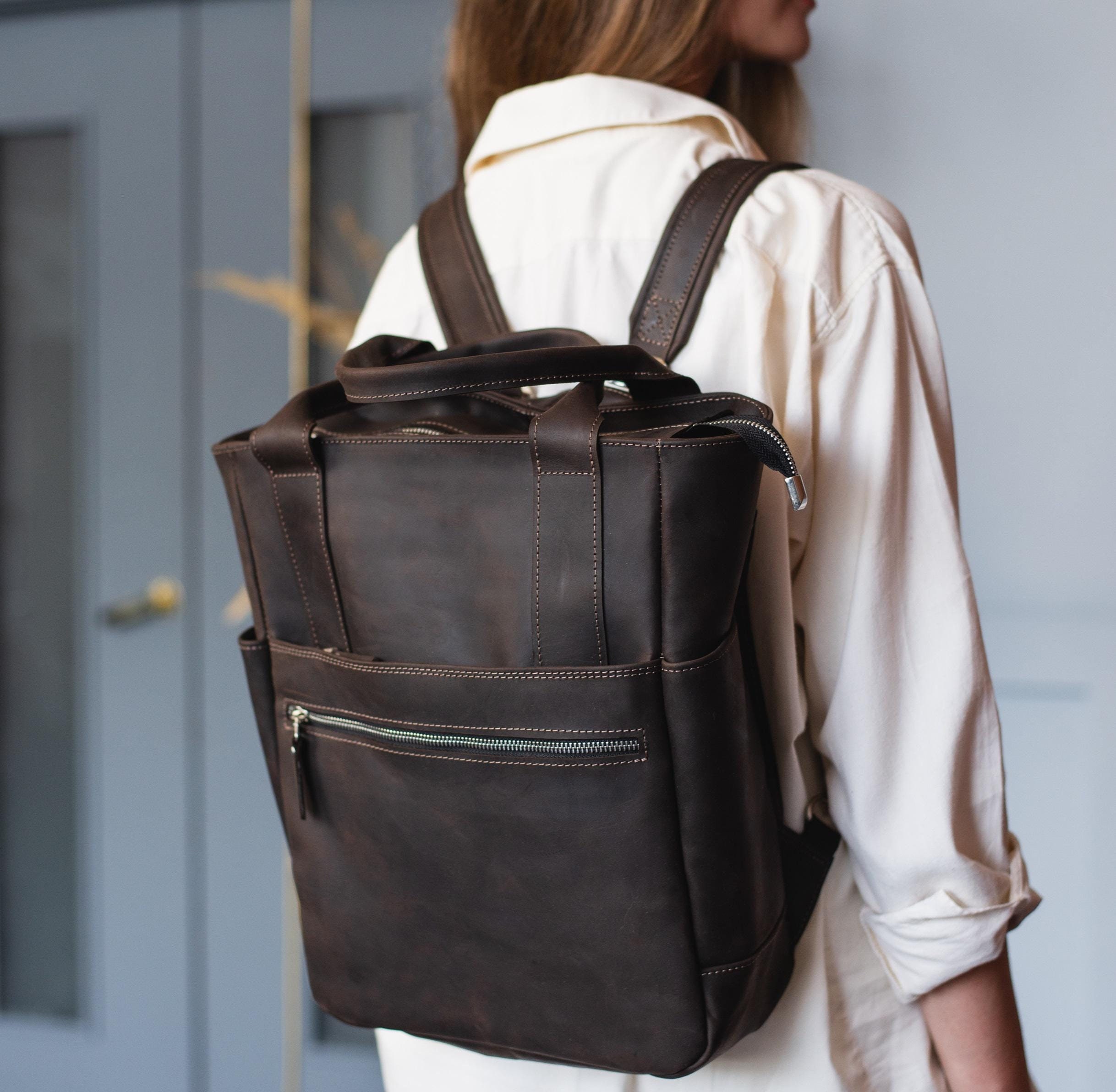 "Convertible Leather Backpack & Tote - Versatile, Stylish, and Functional Size: S - 33x25x9...