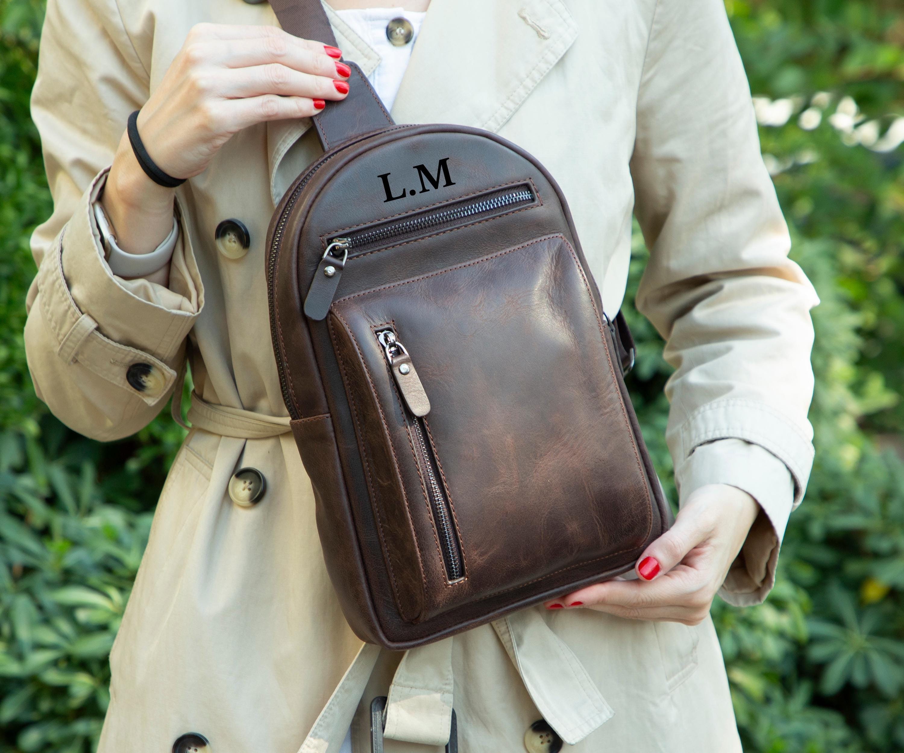 Personalized Leather Backpack, Premium Leather Sling Bag, Chest Bag...