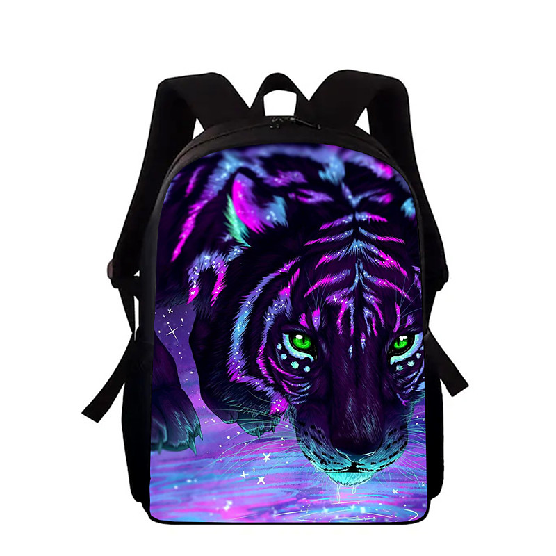 Neon Purple Tiger Backpack for Teens – Fierce 3D Jungle Anima...