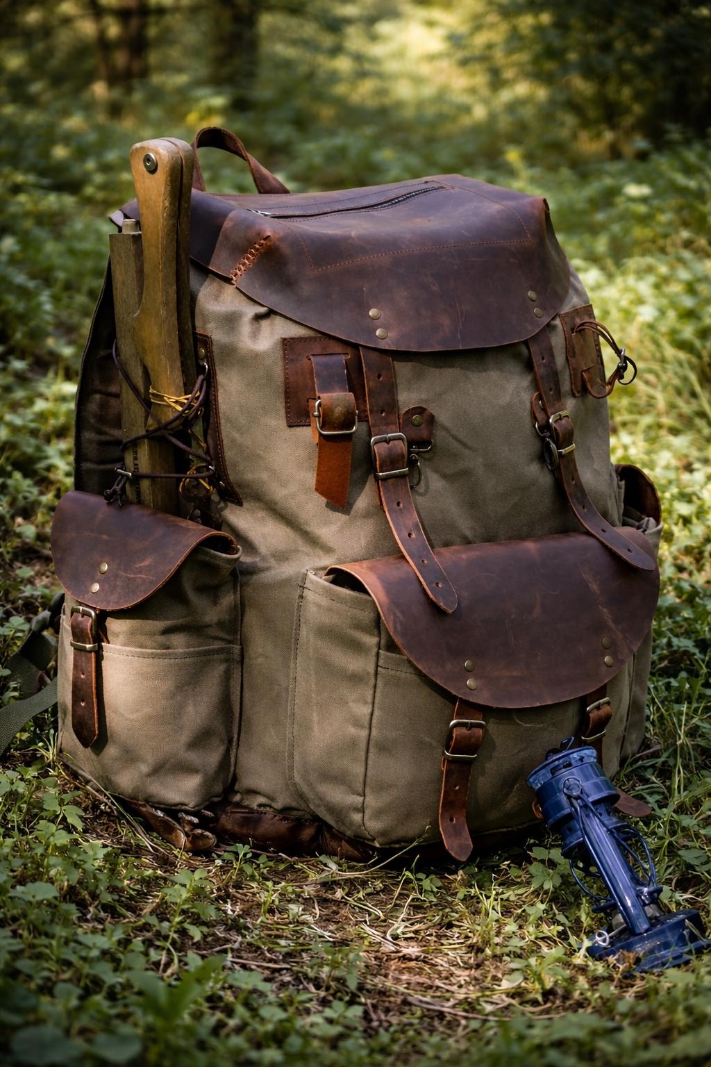 Handmade 7 Camping Backpack Leather and Canvas, Buschraft Backpack,...