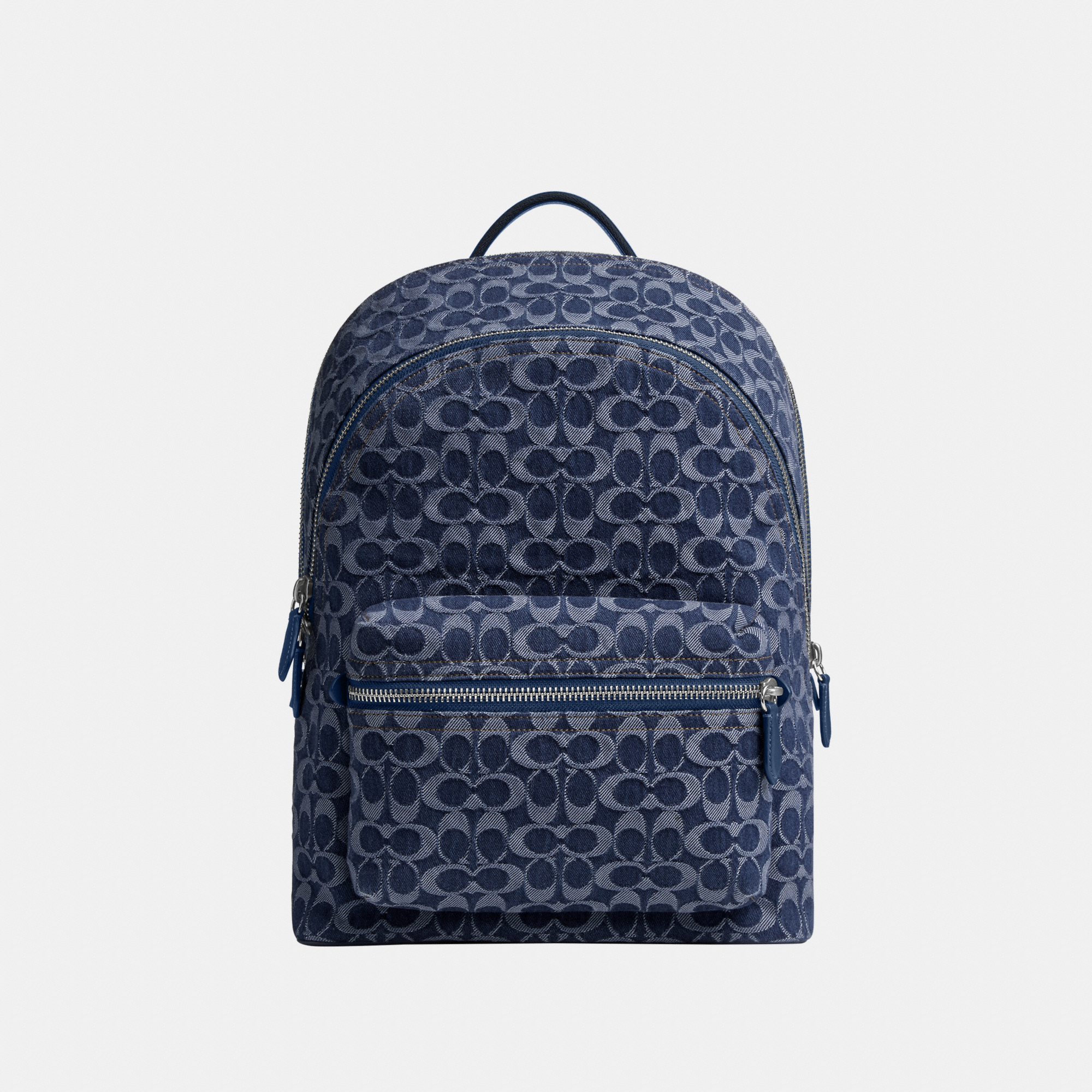 Coach Mens Charter Backpack in Signature Denim Bag - Blue - One Siz...