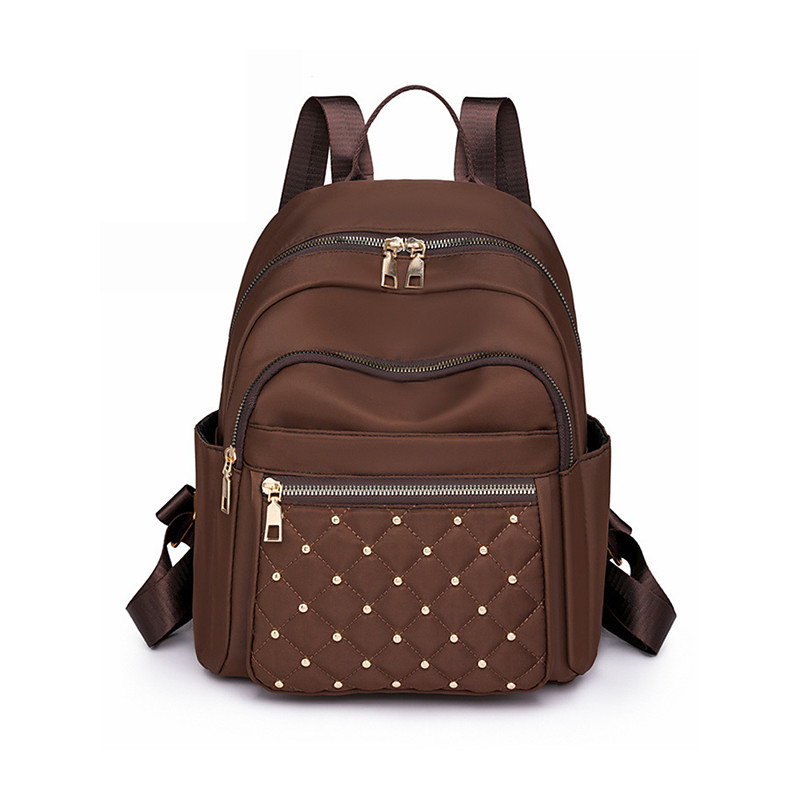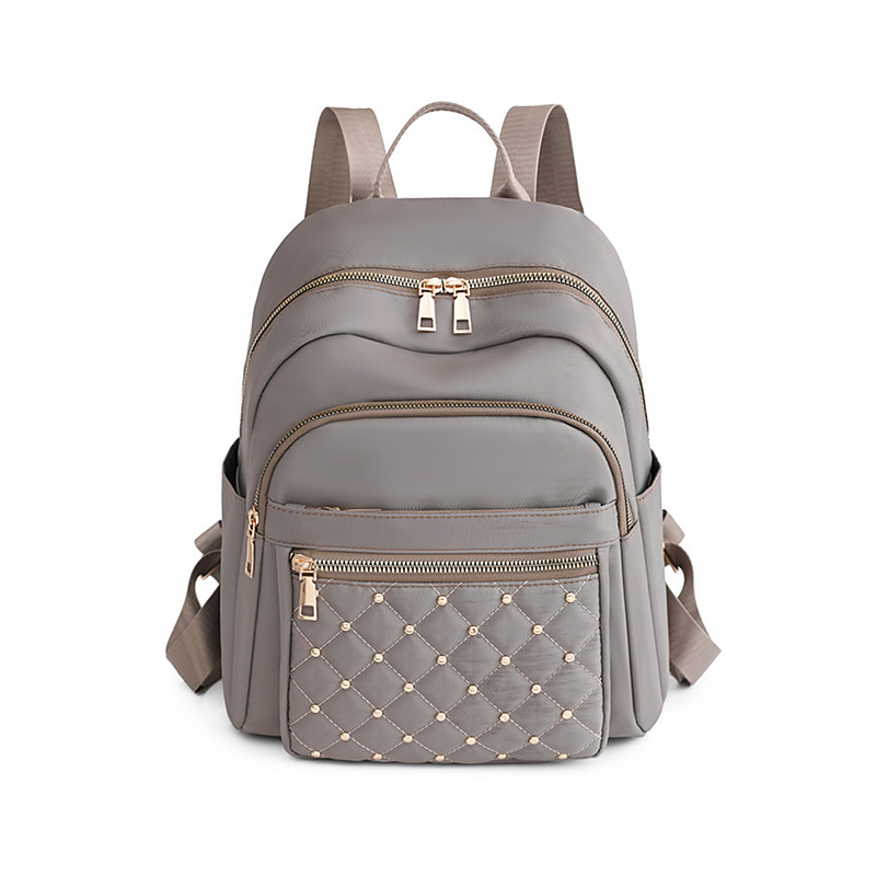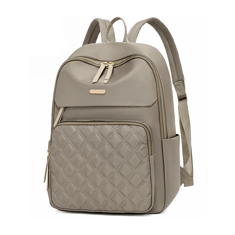 Women's Water-Repellent Nylon Backpack with Gold Zippers, Quilted S...