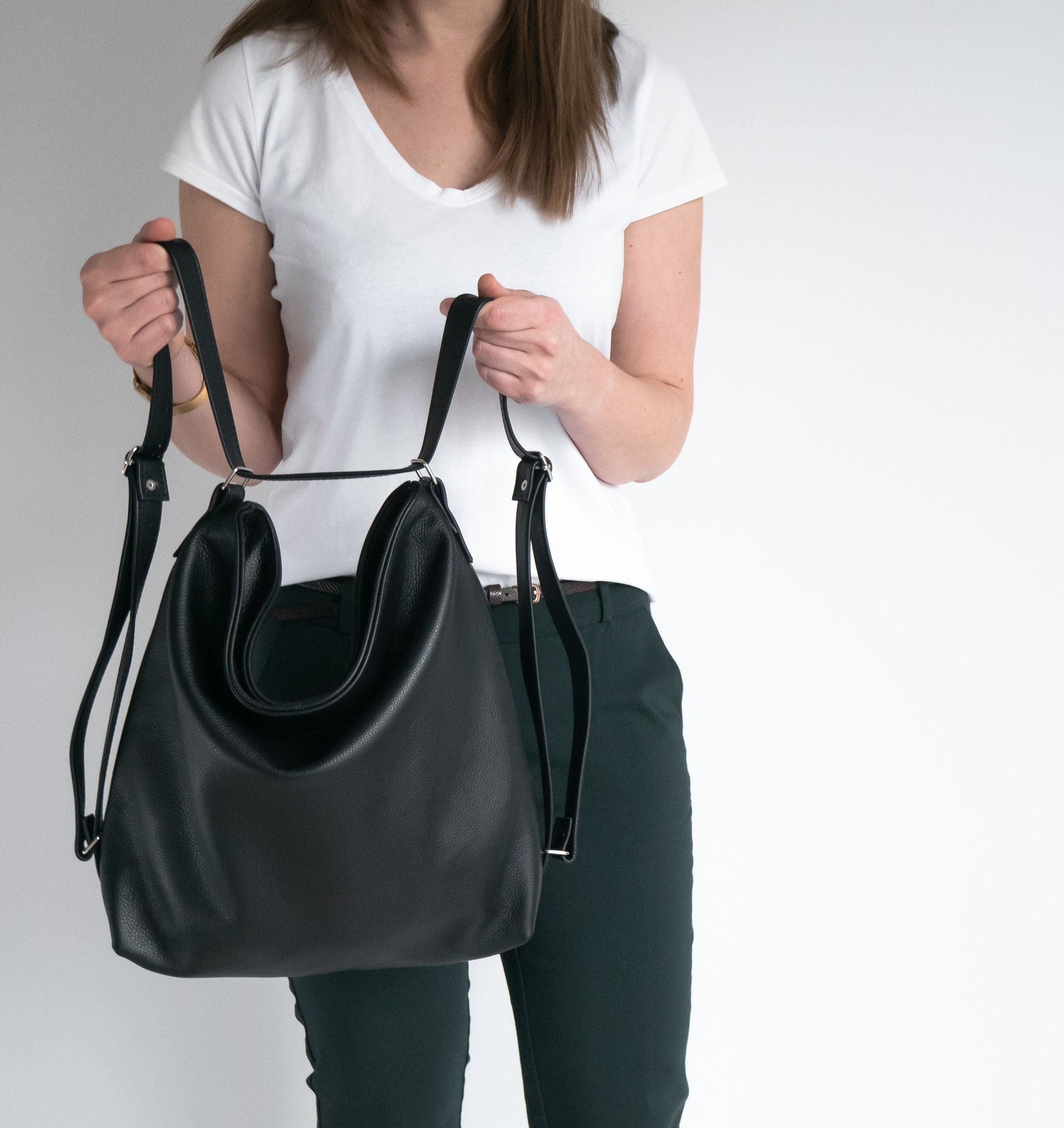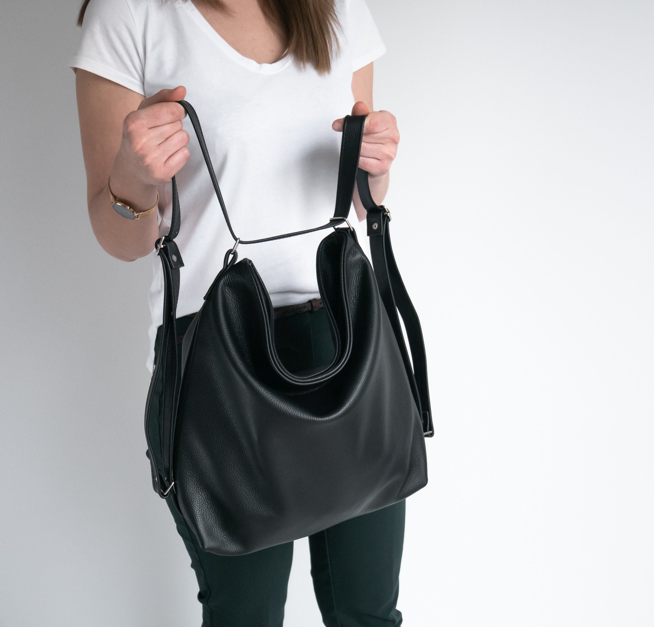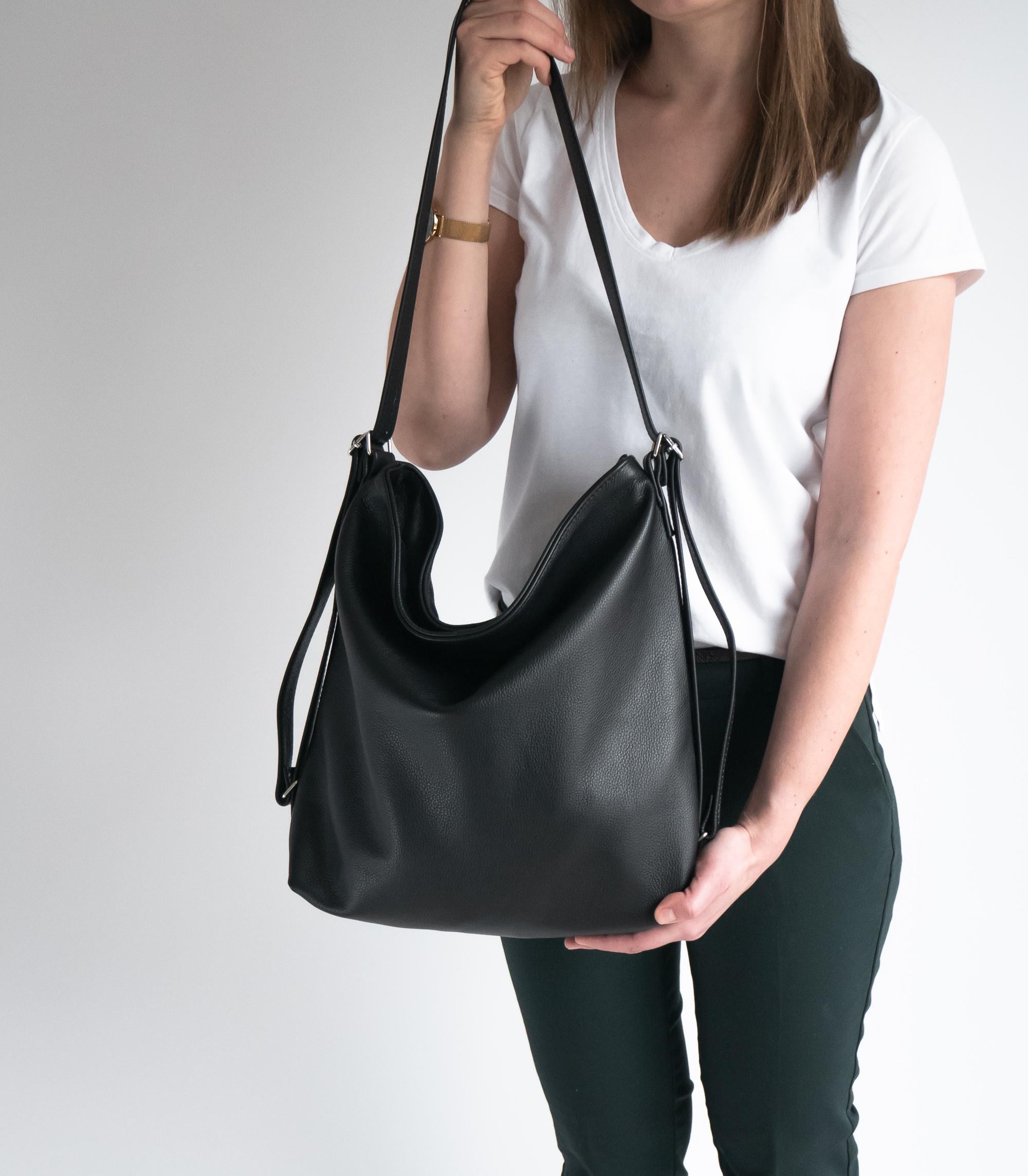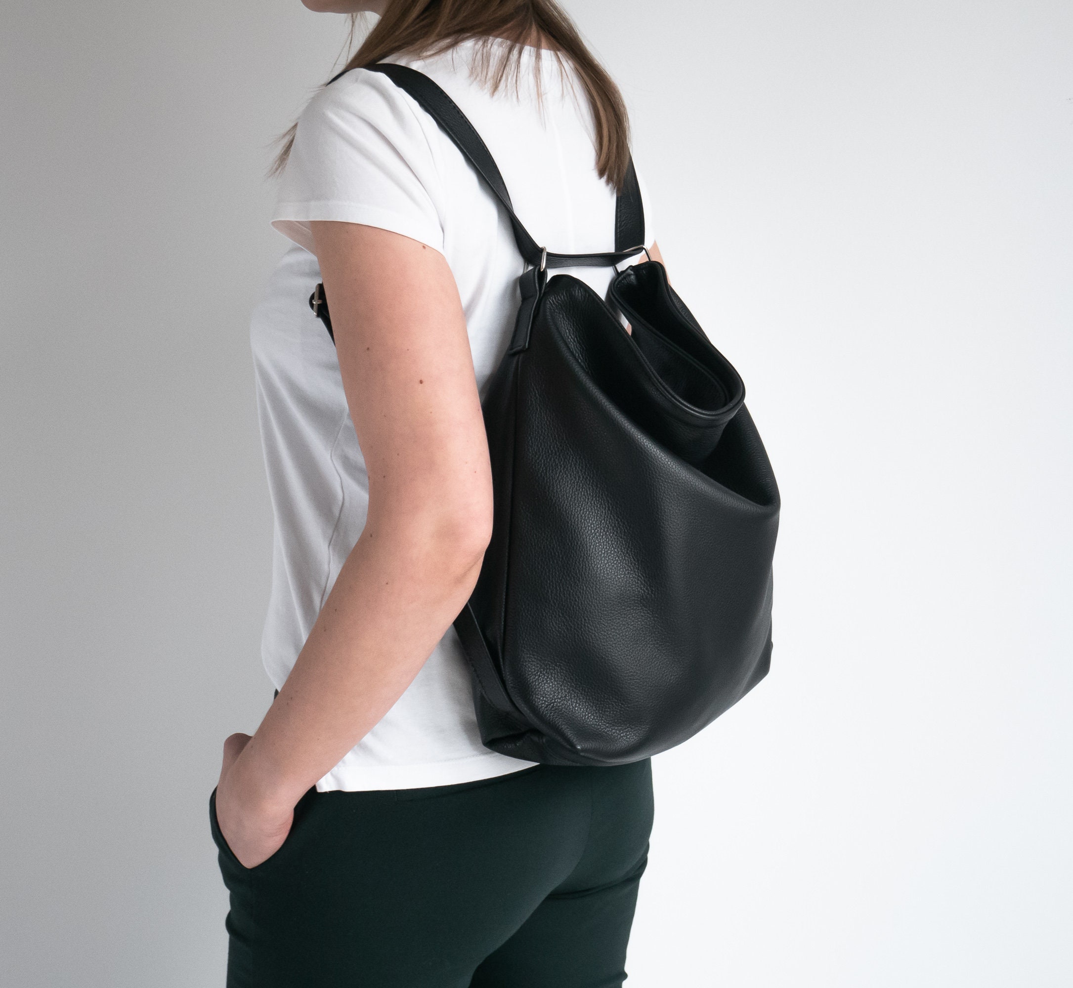 CONVERTIBLE Backpack, Black Shoulder Bag, Natural Leather BACKPACK ...