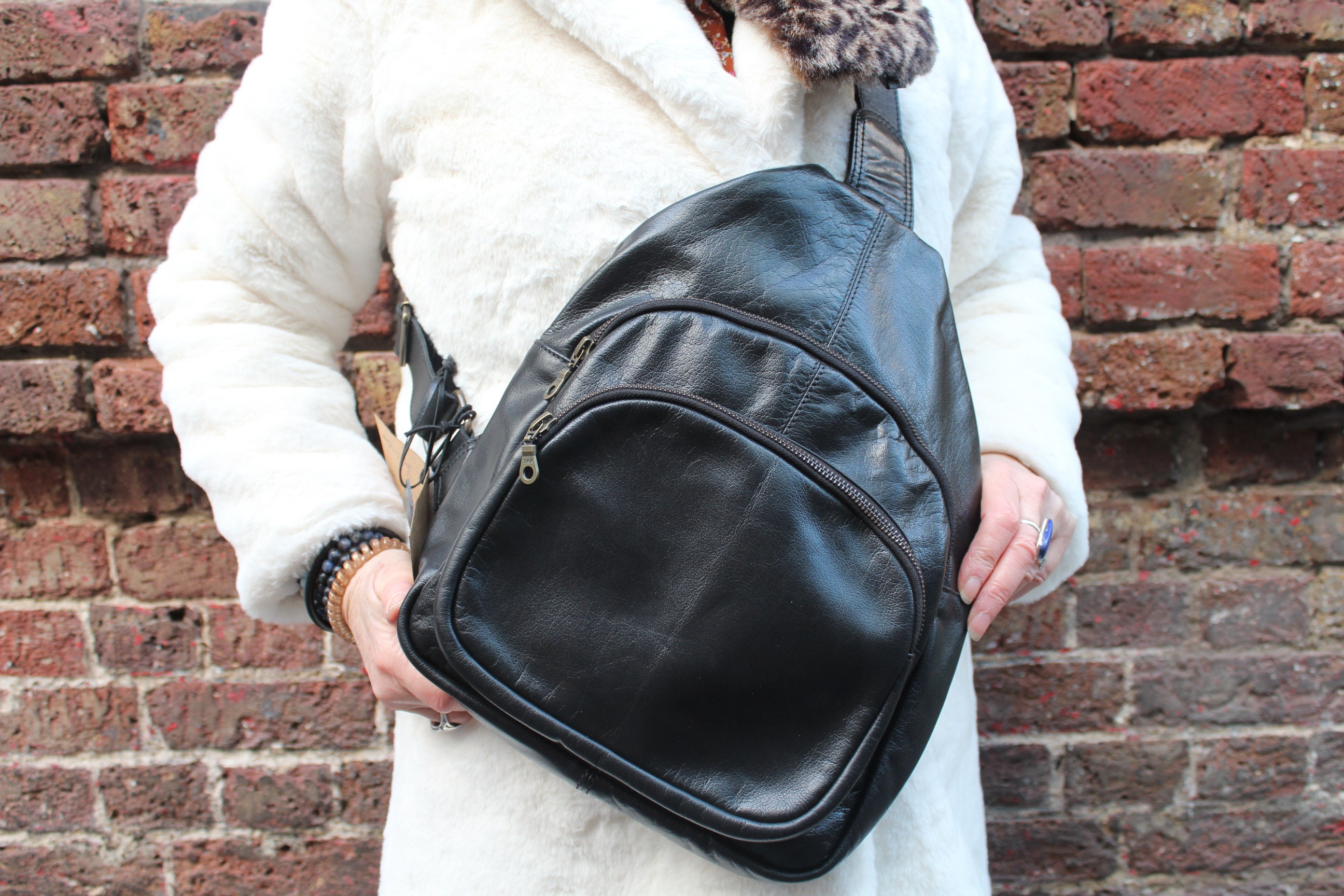 Convertible Leather Sling Bag - A Bag, Backpack, and More A compact, multifunctional accessory that ...