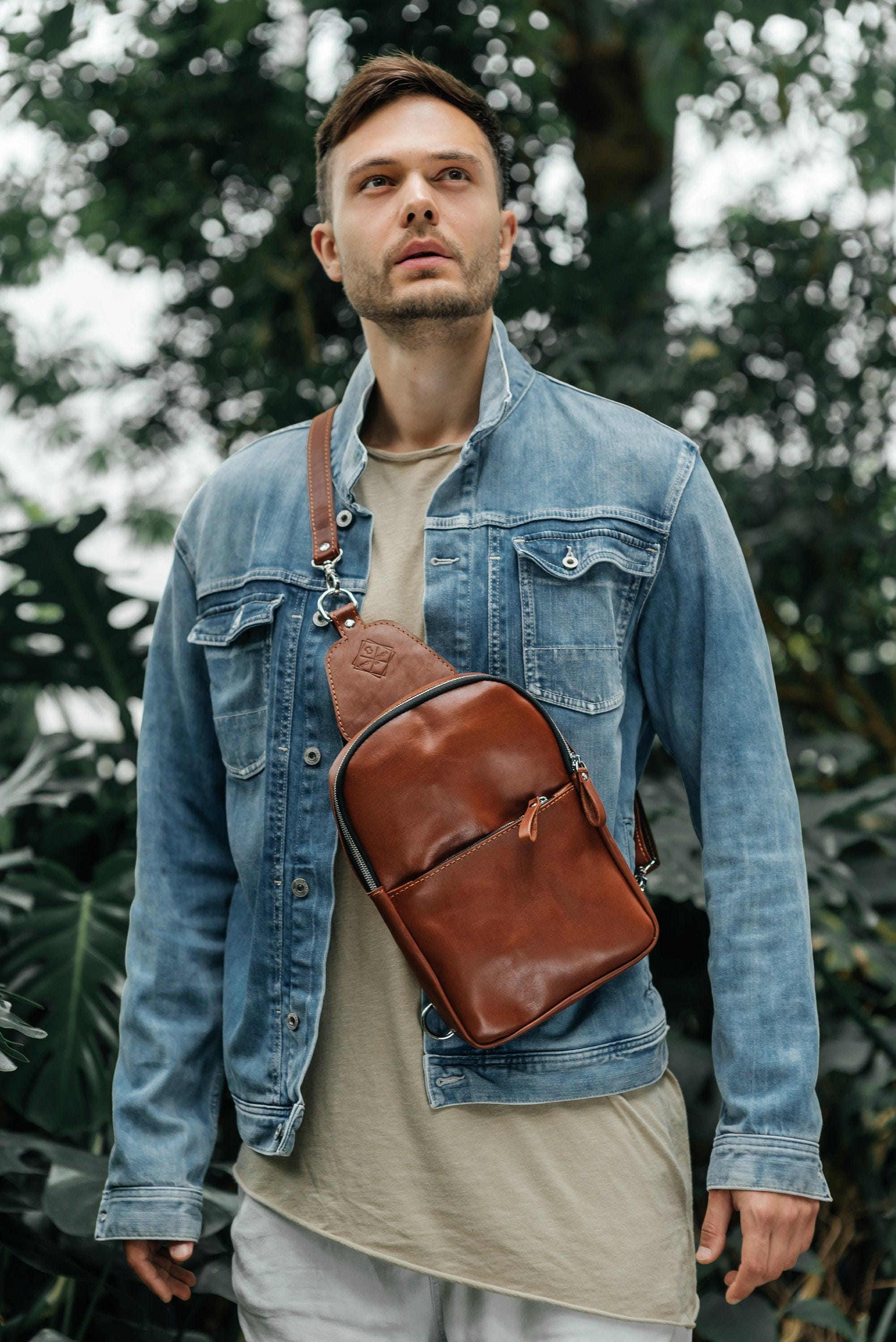 Sling leather bag, brown sling bag, backpack bag, leather accessori...