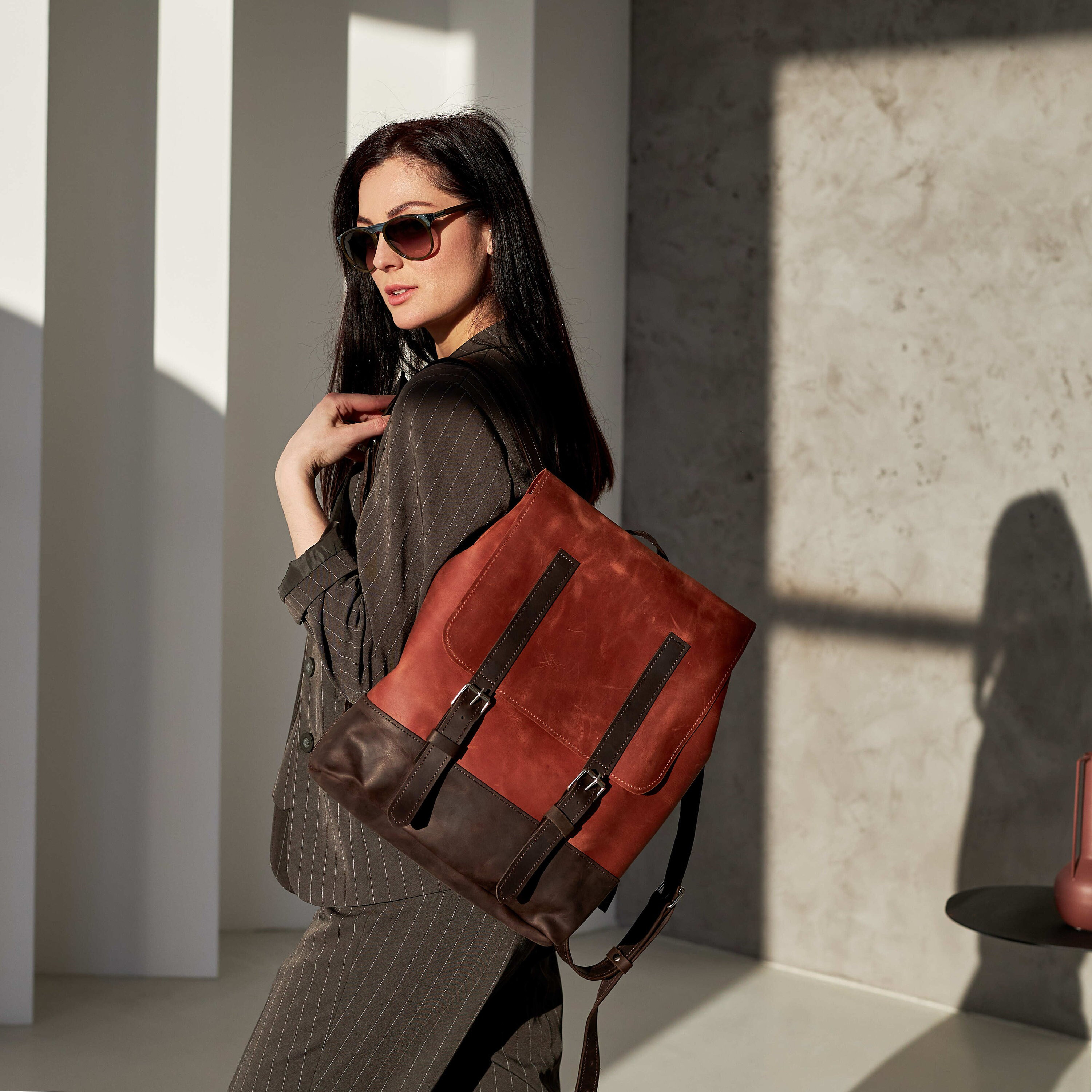 Redefine your daily carry with our women's leather rucksack, a harmonious blend of sophisticated des...
