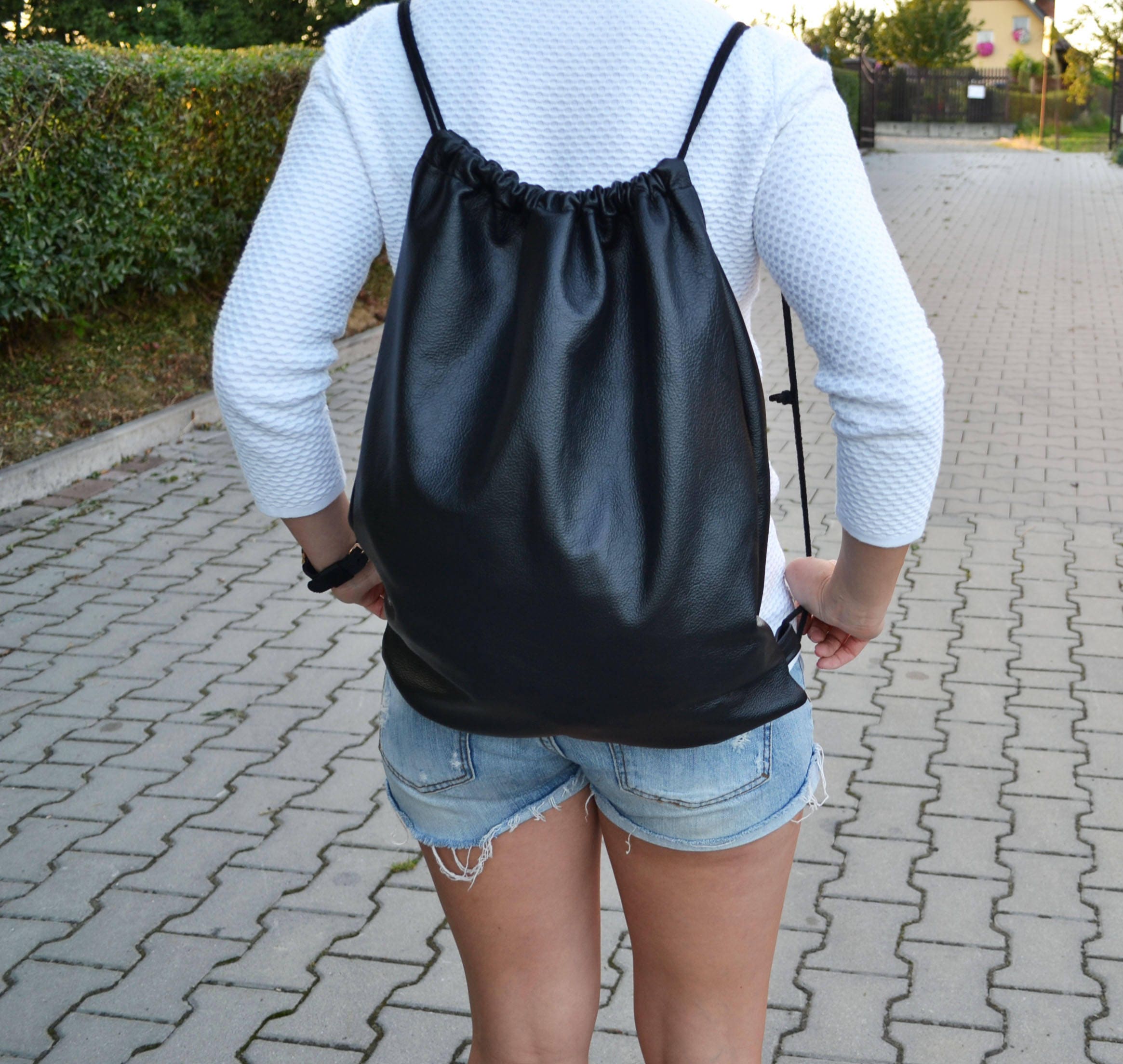 Black leather backpack, Supple leather bag, leather handbag, leathe...