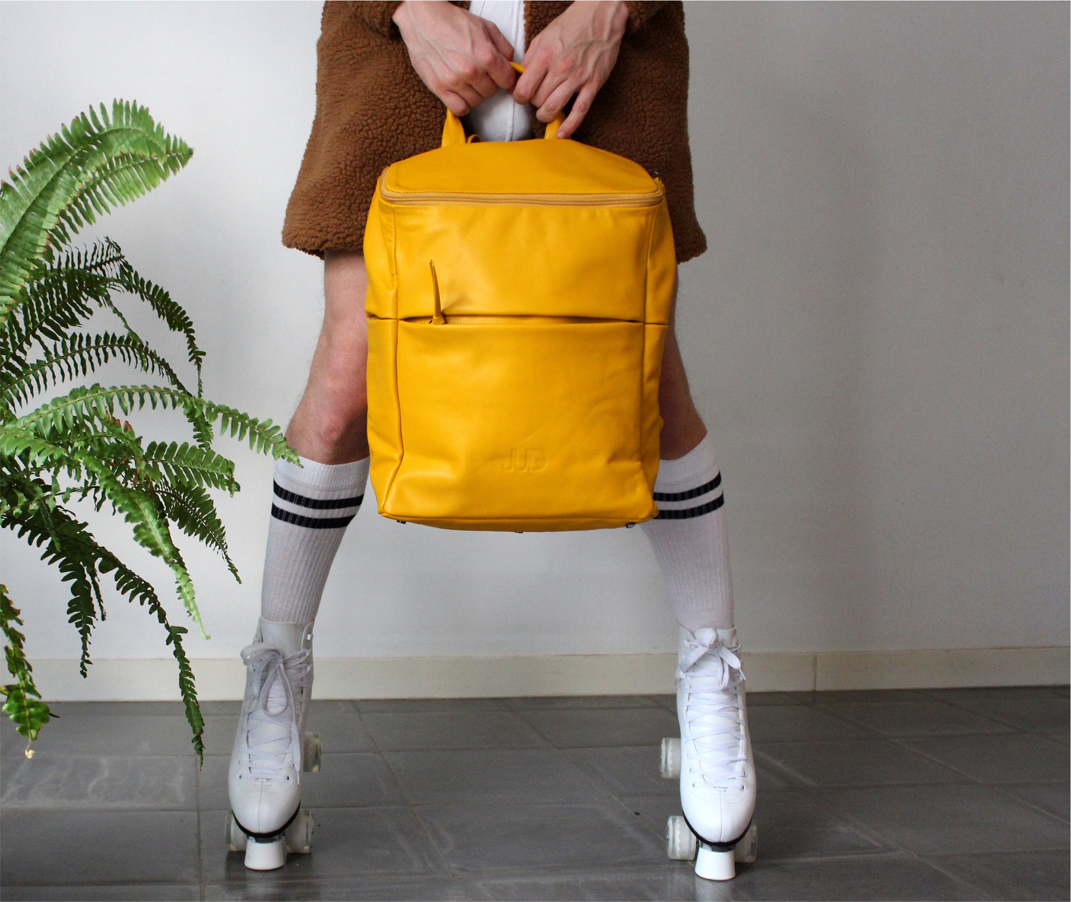 Yellow leather Backpack unisex laptop backpack SALE travel backpack...