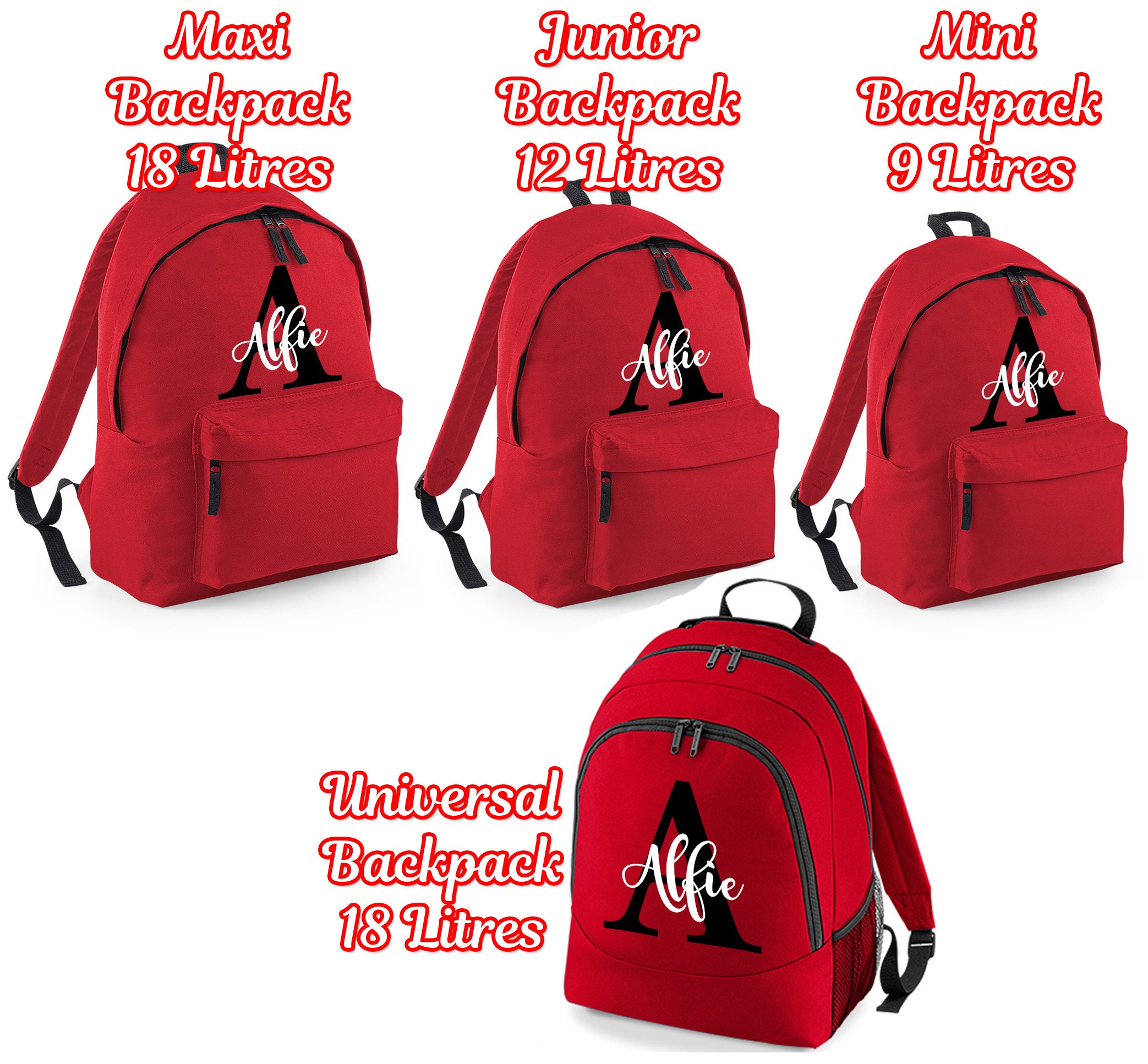 Personalised Backpack Name Initial Book Bag Pencil Case Water Bottl...