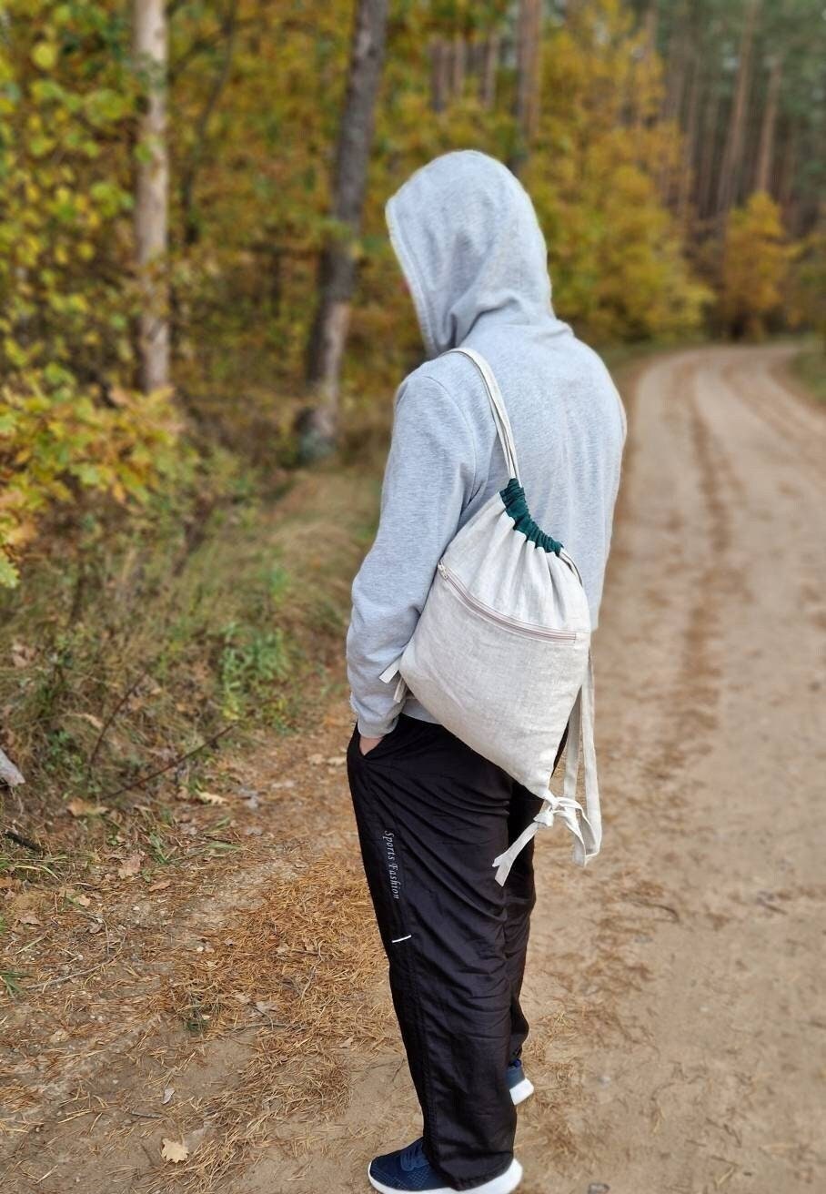 Convertible linen bag backpack, Boho messenger bag, Drawstring back...