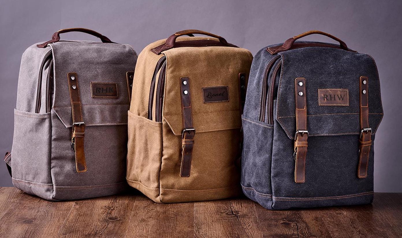 Personalized Canvas Backpack, Rucksack, Personalized Mens Leather B...