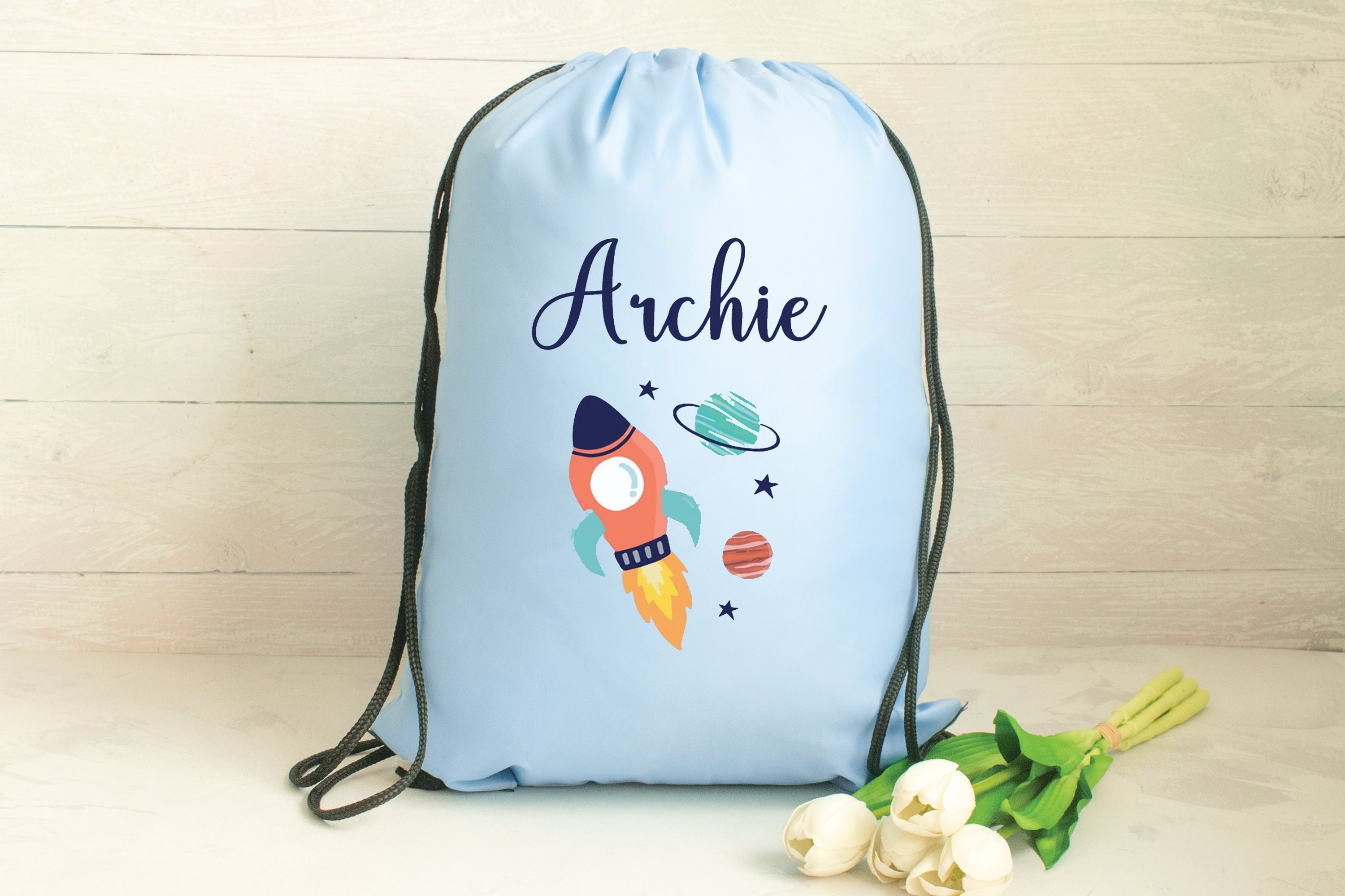 Personalised Gym Bag Kids, Boys Space Gym Bag, Boys Drawstring Bag,...