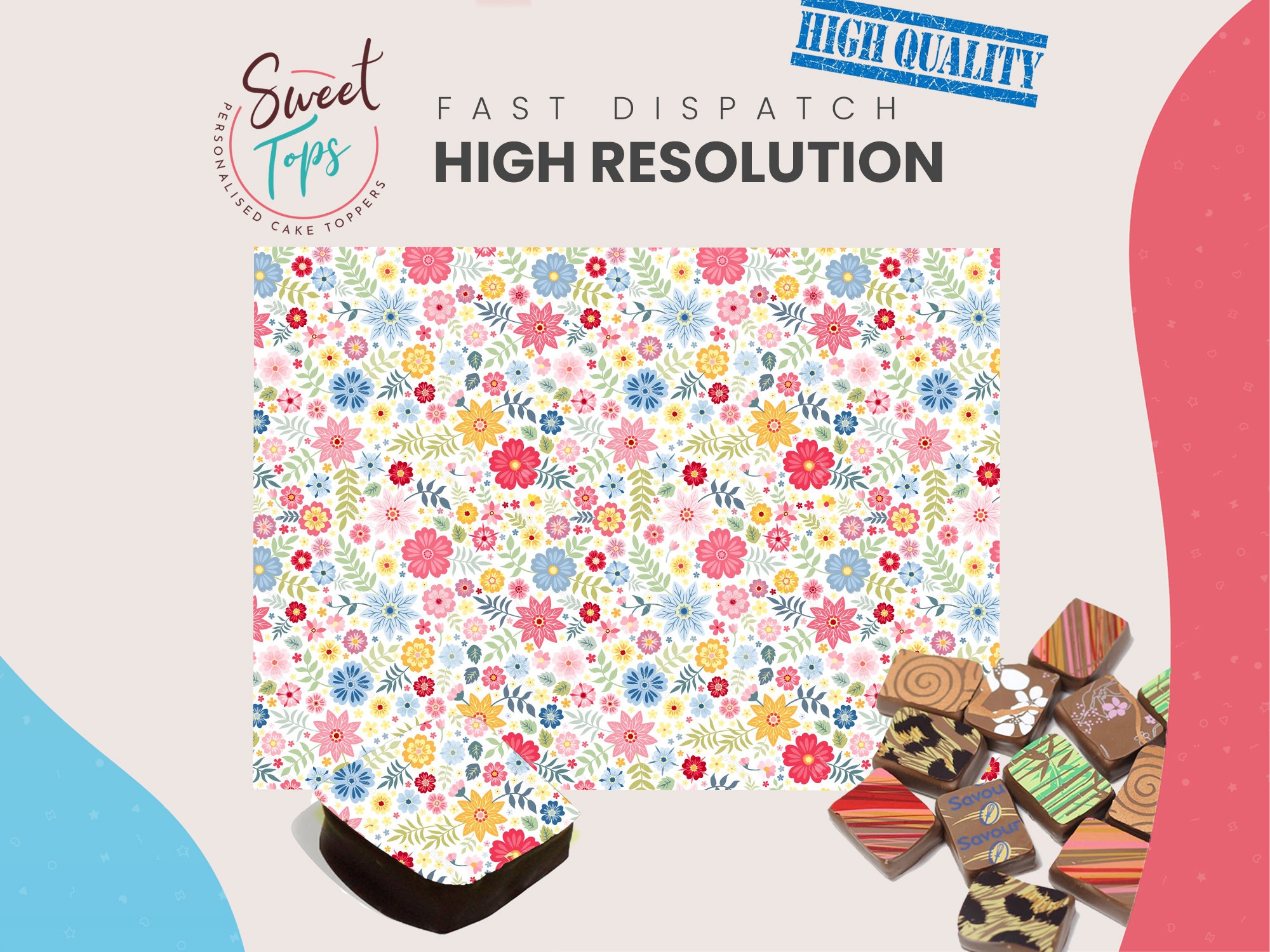 Chocolate Transfer Sheet - Flowers | Edible Chocolate Decoration | A4 Size Add an elegant, floral fi...