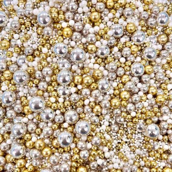 Silver gold anniversary metallic sprinkle blend ball mix for cupcak...