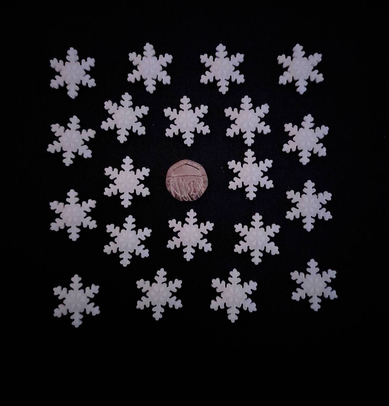 This listing is for edible Fondant / Sugar Paste Snow Flakes. They are white and can have shimmer ad...