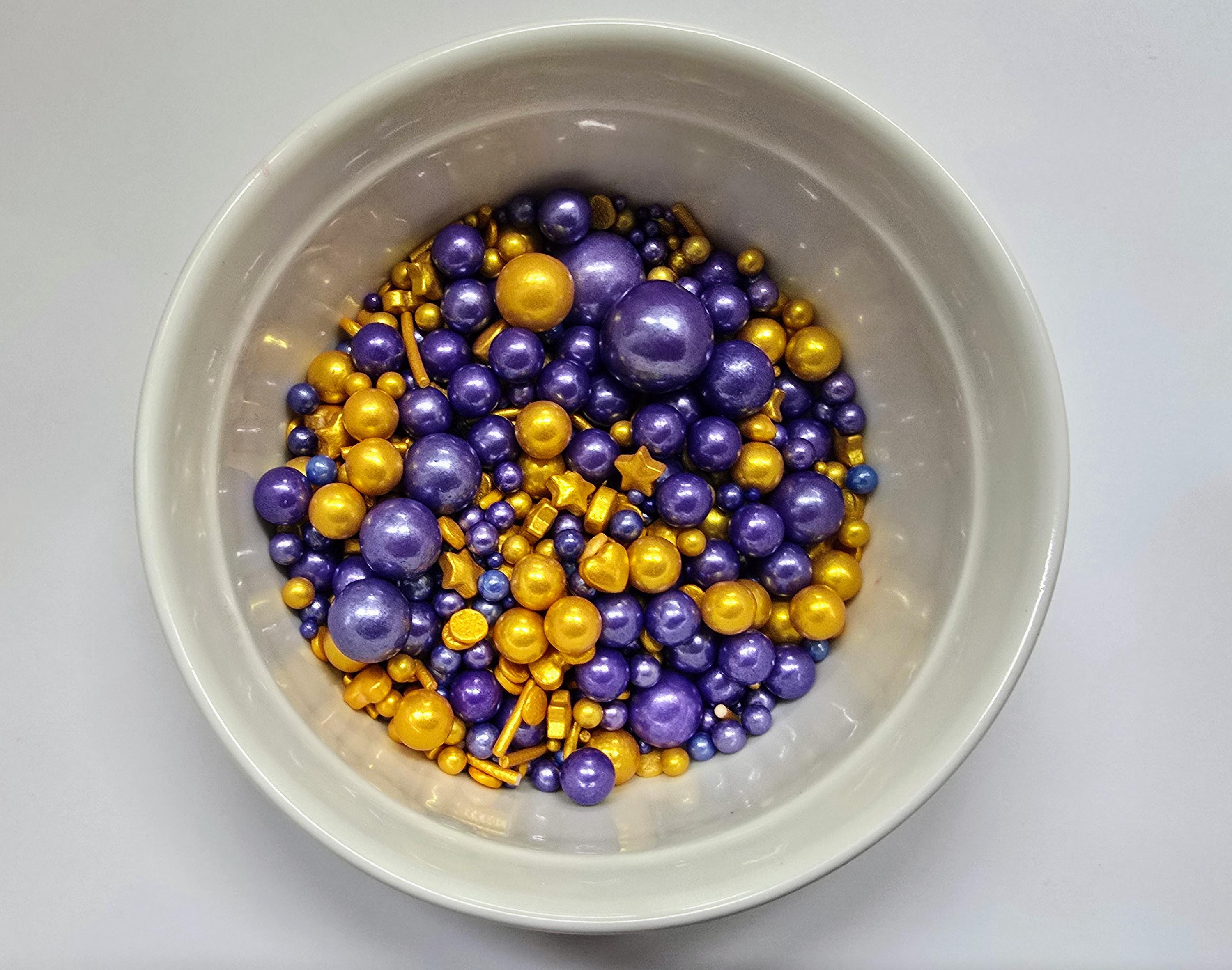 Gold & Purple Edible Pearl Sprinkles: Vegan, Gluten-Free, Halal
