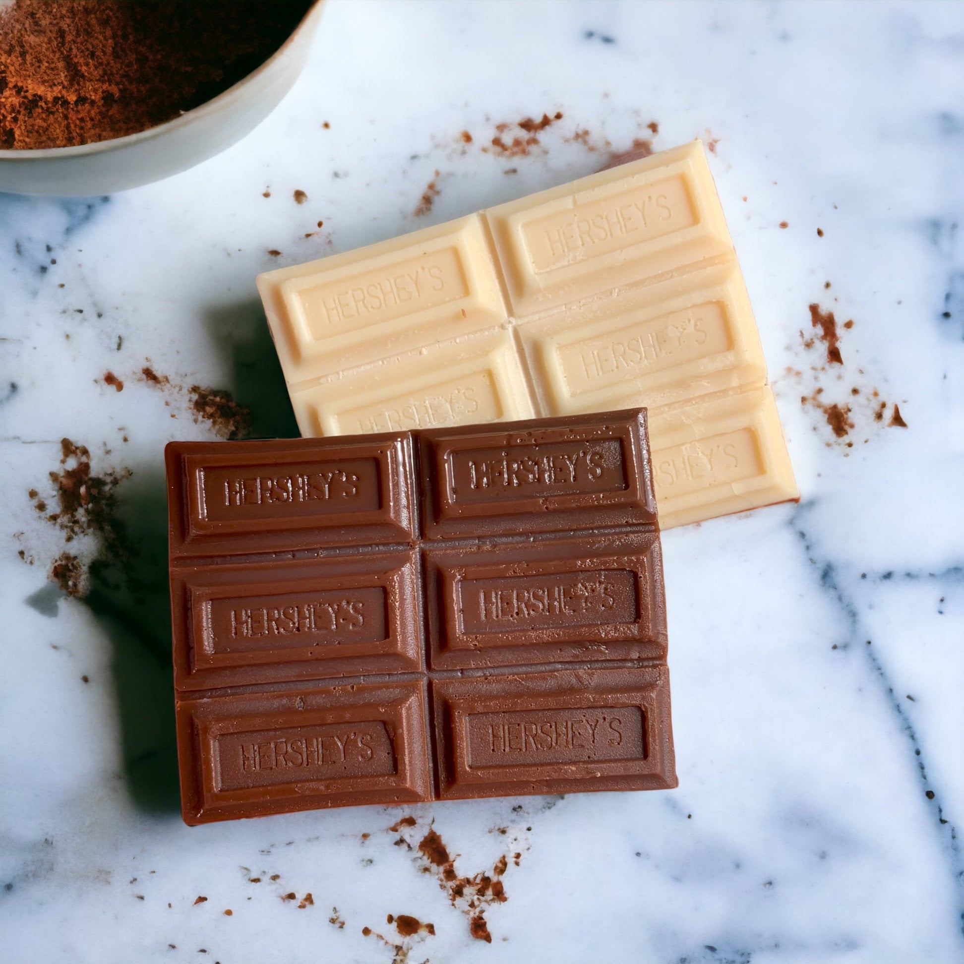 "Made from real Hershey chocolate bars, these embeds are sure to give your candles an \"ey...