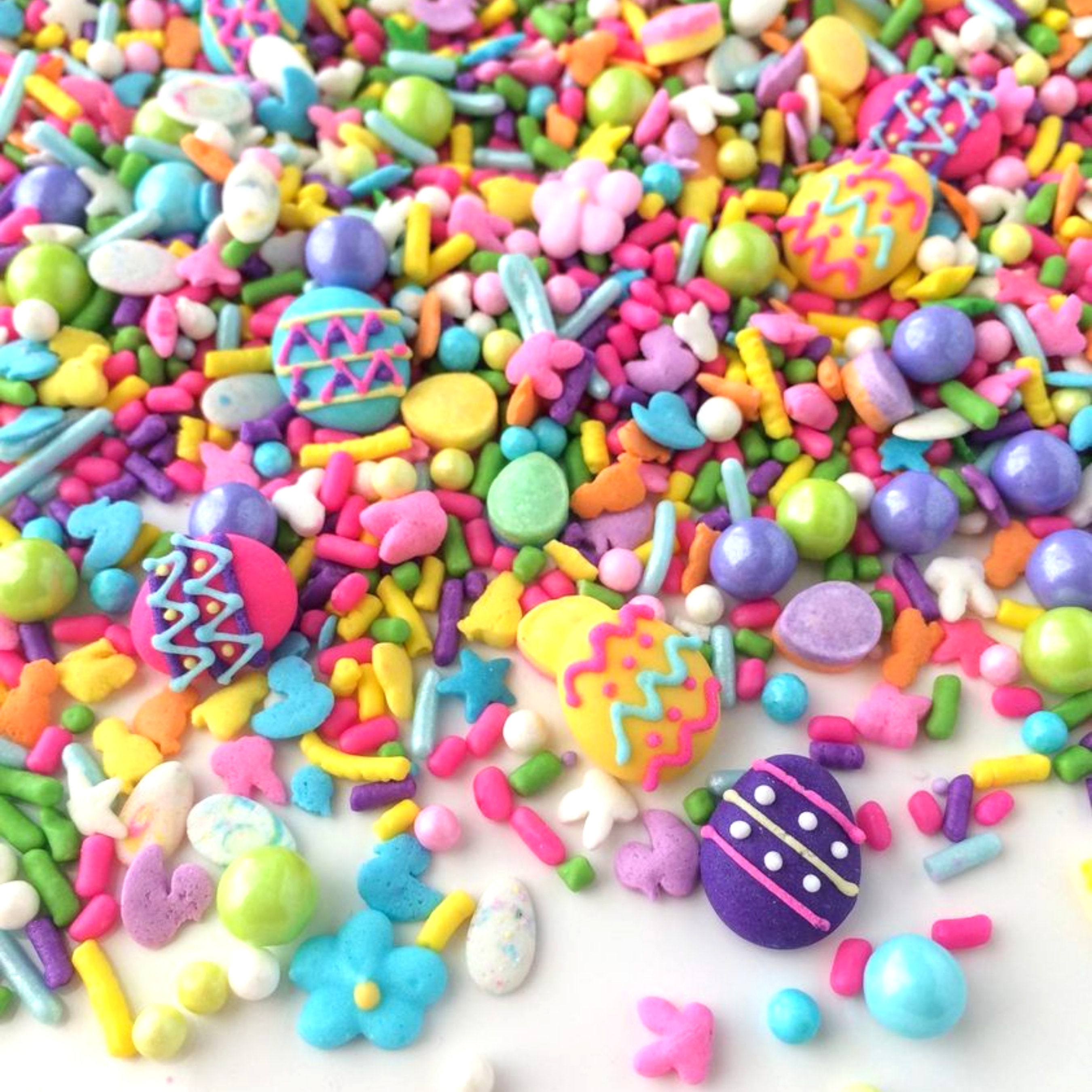 Easter sprinkles bunnies eggs metallic pink blue yellow sprinkle bl...