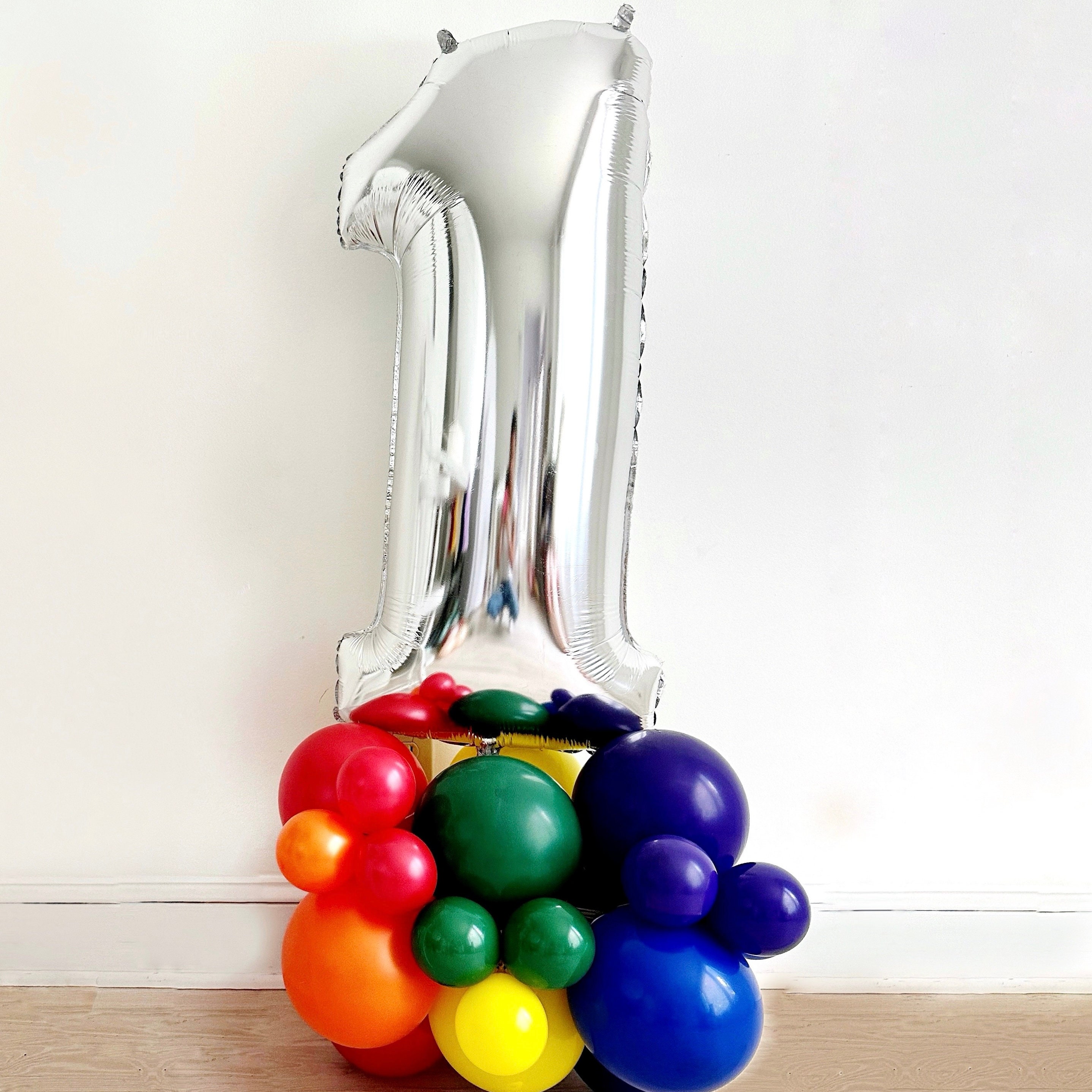 Rainbow 1st Birthday Balloon Tower, Colorful First Birthday Decorat...