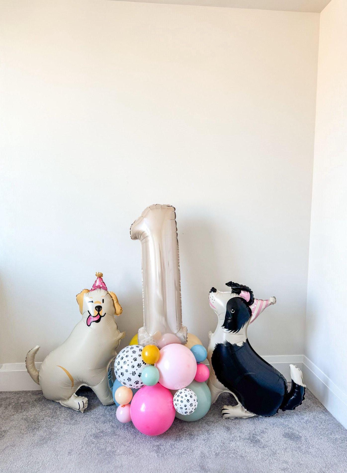 Cute Dogs Balloon Tower Puppy First Colorful Birthday Balloon Displ...