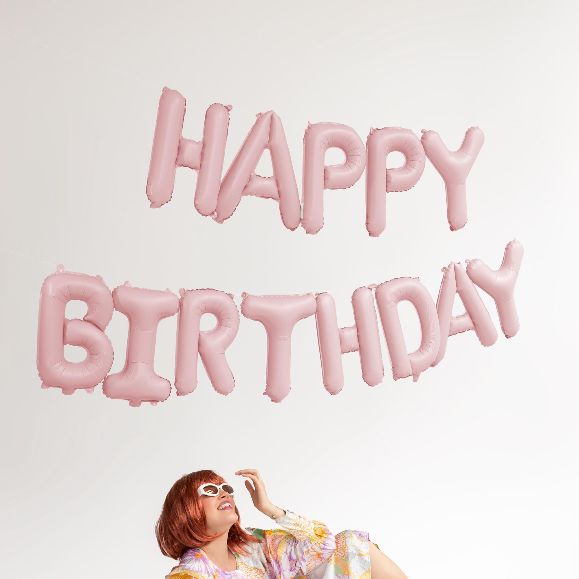 Display this stylish pastel pink Happy Birthday balloon bunting at your next party for a fun decorat...