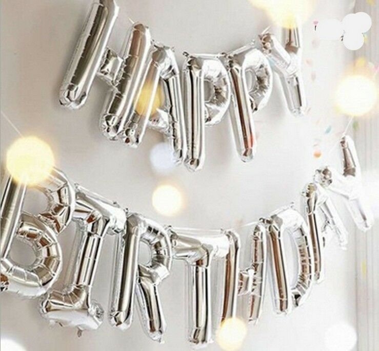 Happy Birthday Banner, Silver birthday decoration, Birthday Bunting...