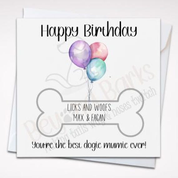 "Birthday card from the dog, with possibility for number balloons.Personalised greeting card op...