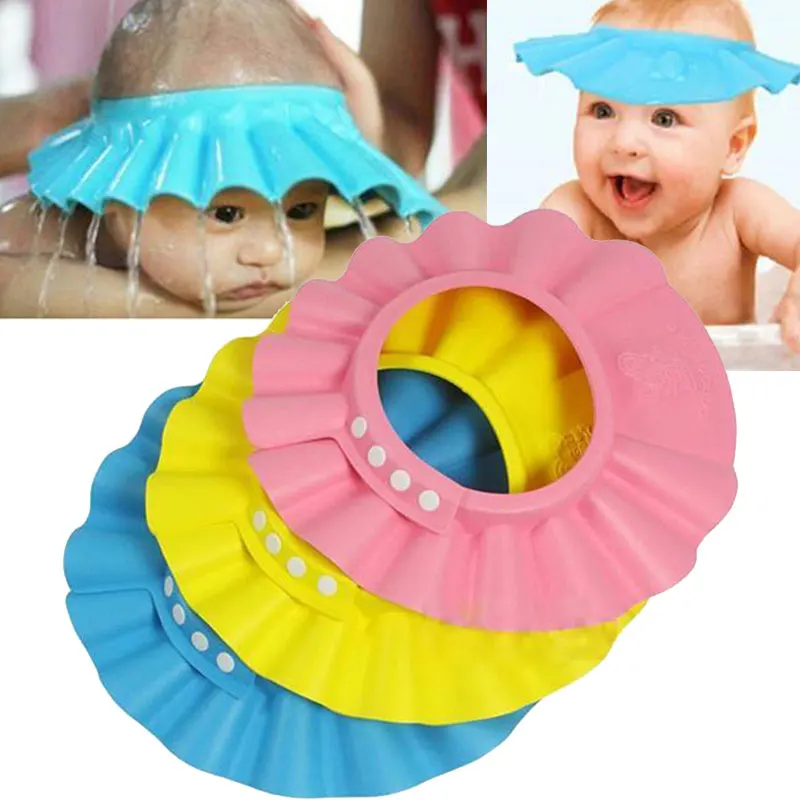 3 Colors Children Adjustable Safe Shampoo Shower Cap Bath Protection Soft Caps Baby Hats Waterproof ...