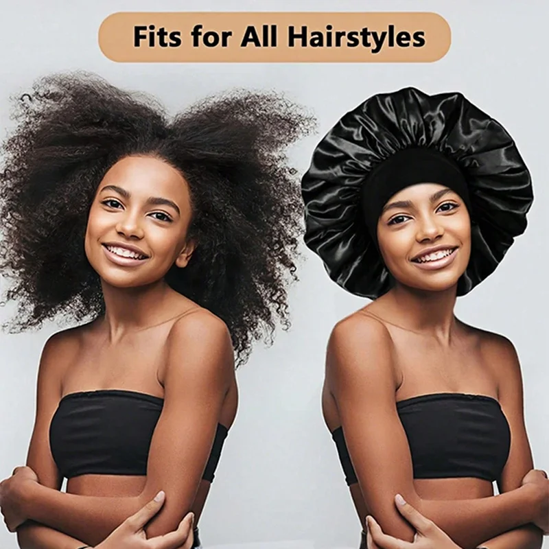 2Pcs Black/Red/Purple Sleep Cap European and American Classic Solid Color Shower Cap Adult Fashion S...