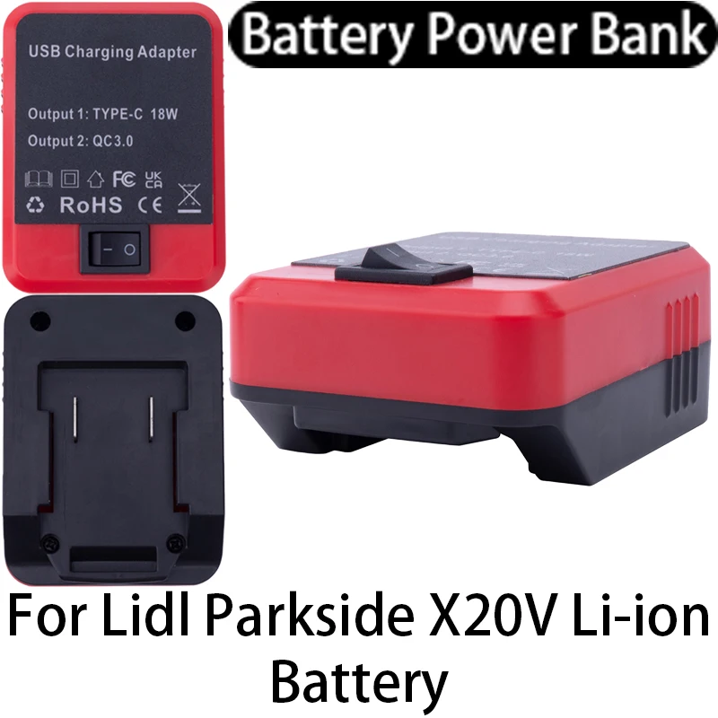 Battery adapter power bank for Lidl Parkside X20V Li-ion battery with USB/Type-C dual fast charging ...