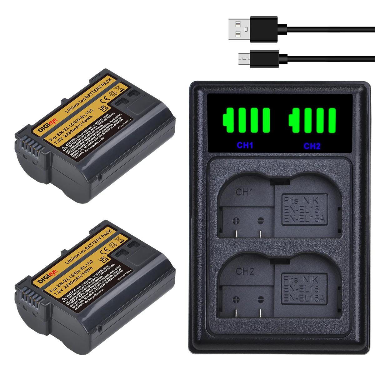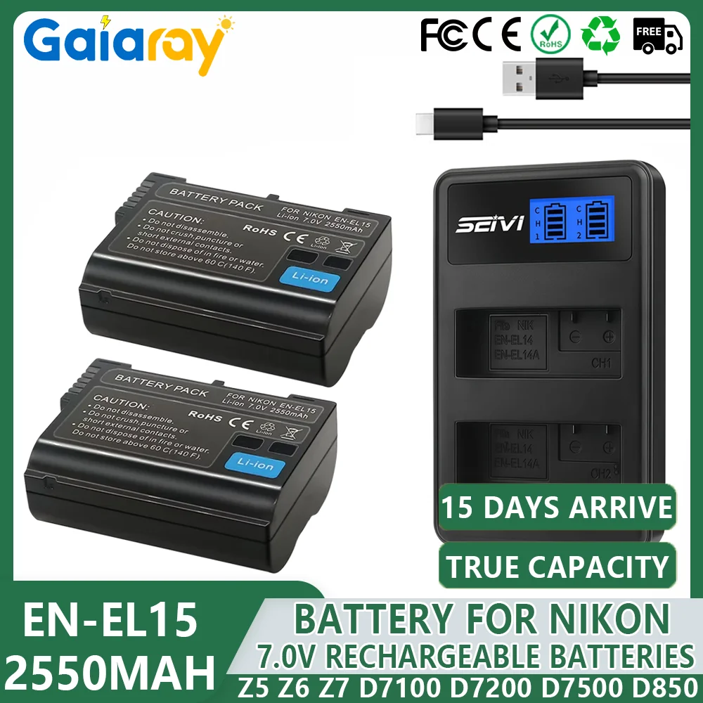 EL15 EN-EL15 Battery 2550mAh + LCD Charger for Nikon Z5 Z6 Z6 II Z7 Z7II D7000 D7100 D7200 D850 D750...