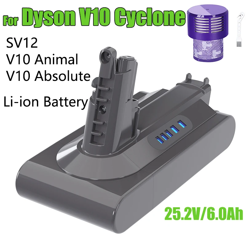 For Dyson V10 Battery 25.2V 6000mAh Li-ion Rechargeable Battery SV12 V10 Absolute V10 Fluffy cyclone...