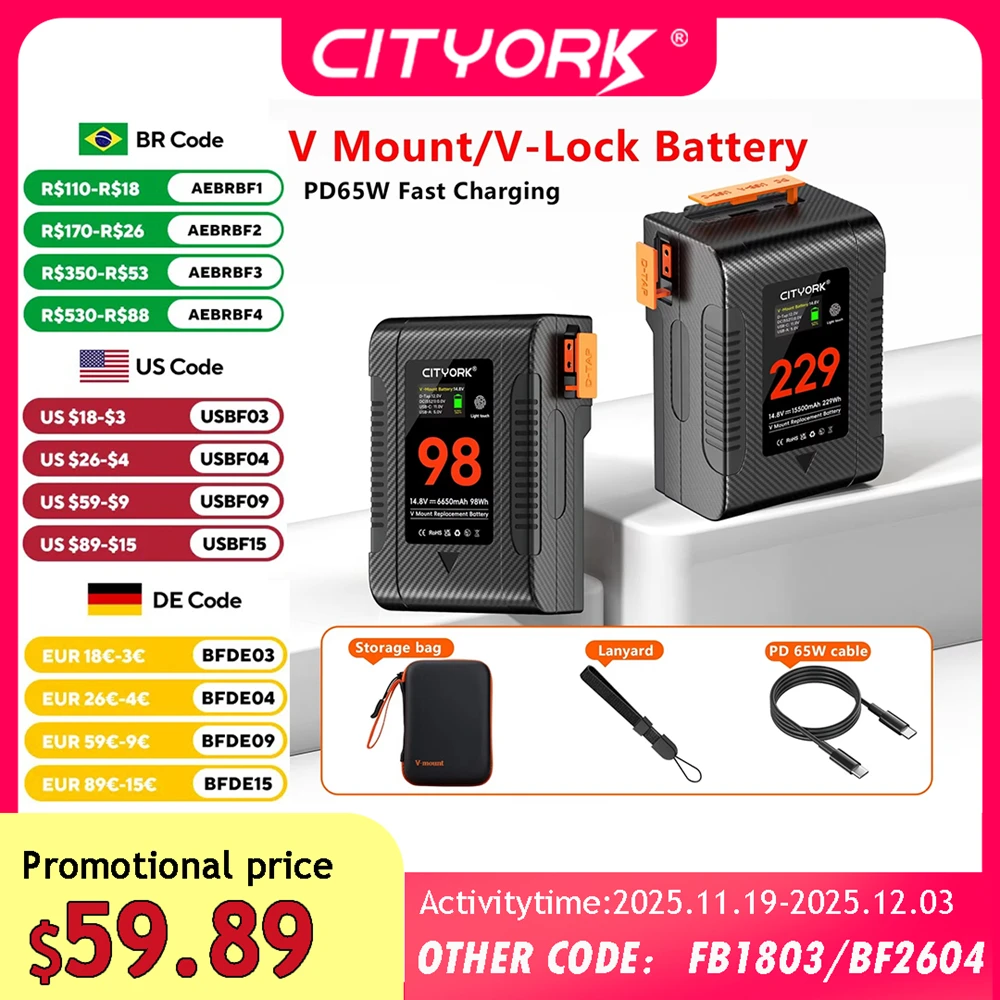 New V-Lock V Mount 98Wh 229Wh Battery BP Battery With PD 65W Cable ...