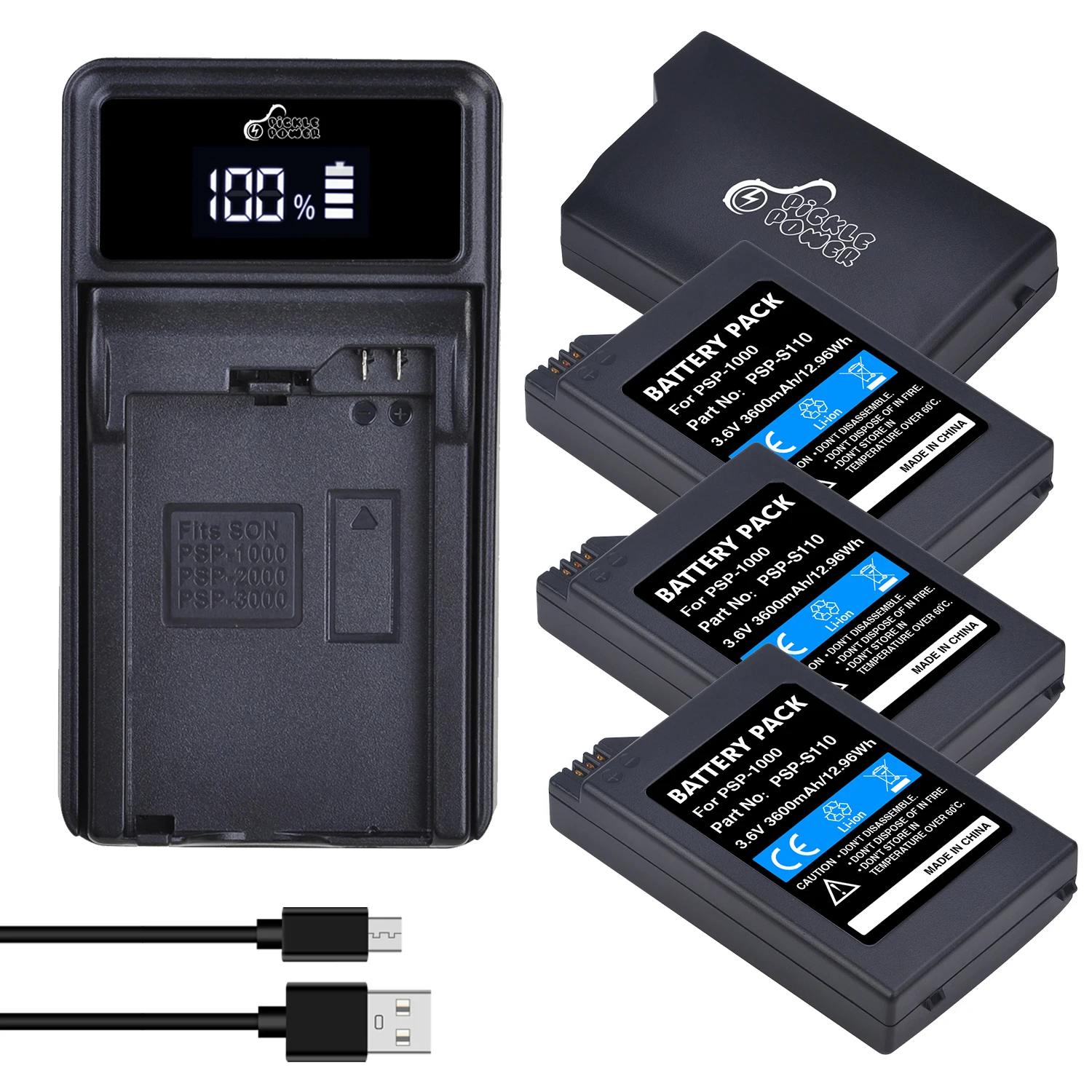 Pickle Power 3600mAh Battery For Sony PSP 1000 PSP-S110 OR LED USB Charger For Sony PSP 1000 PlaySta...
