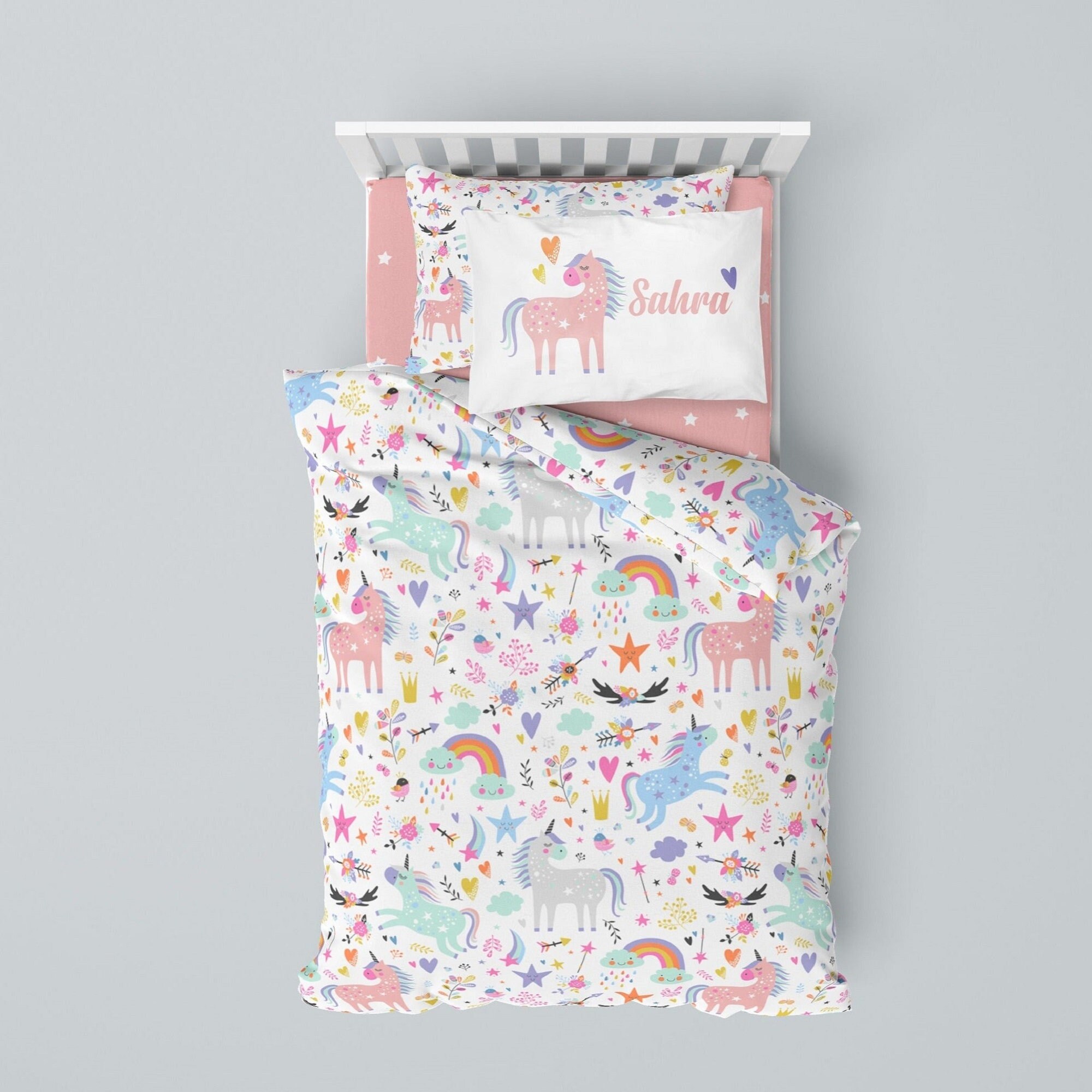 Colorful Unicorn, Baby Bedding, Baby Sheet Set, Sheet Set, Kids Bed...