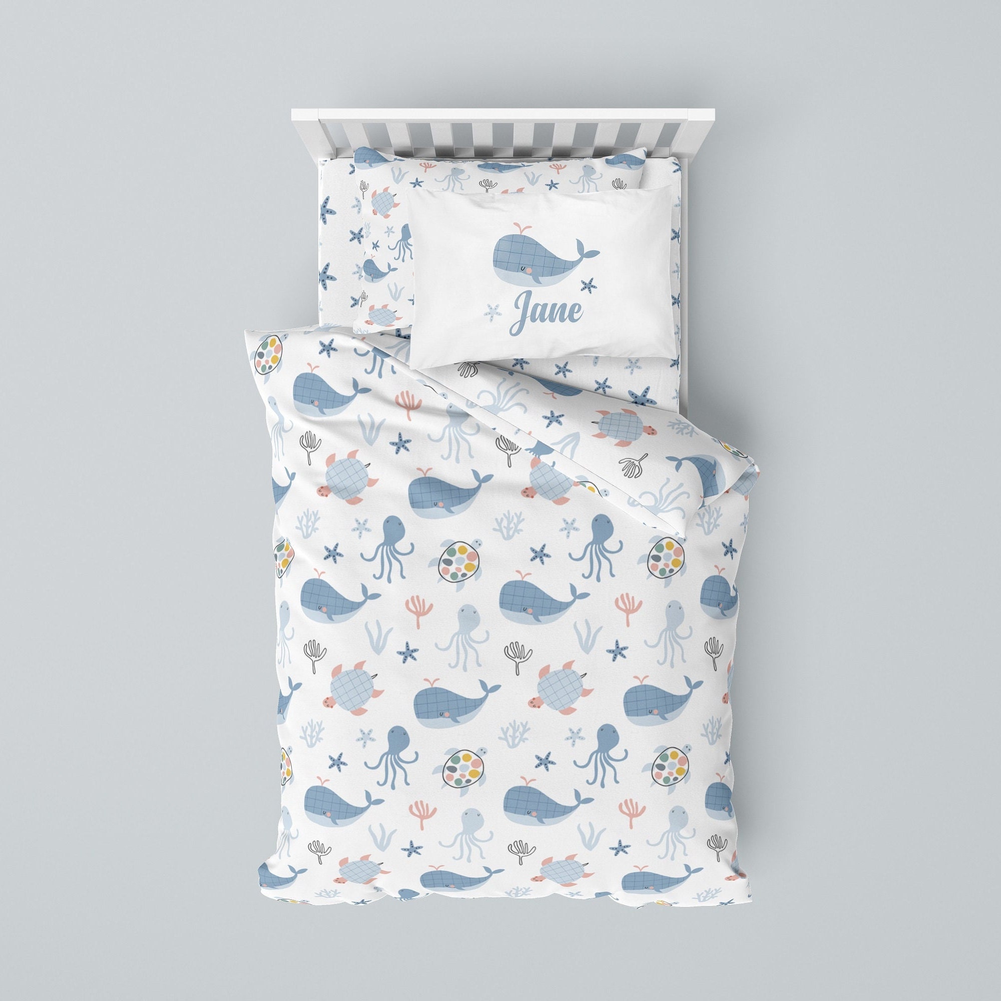 Ocean Sheets, Dolphin Sheets, Custom Bedding, Baby Bedding, Baby Sh...
