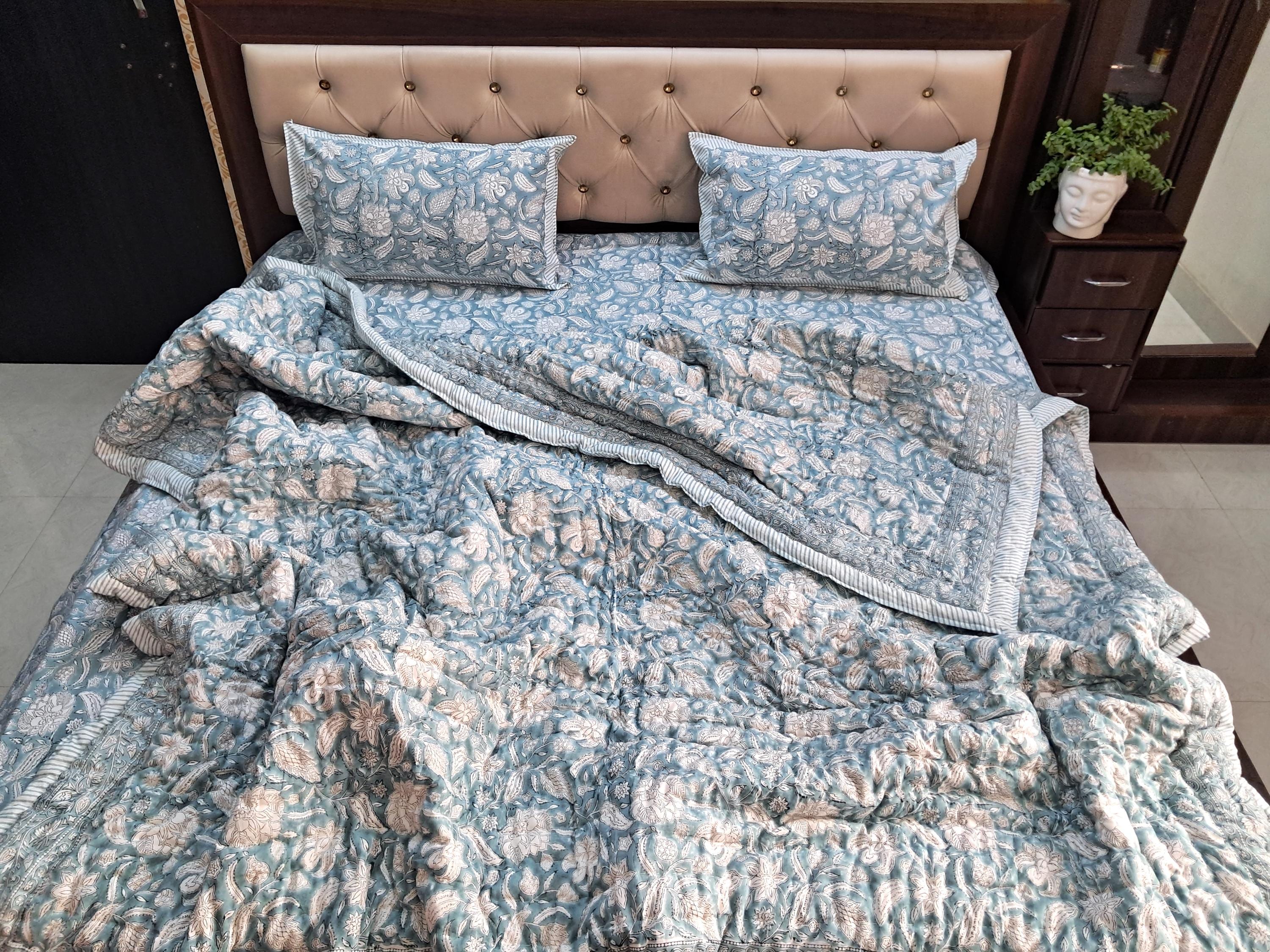 "Jaipuri Block Print Comforter Set - Luxury Bedding Set - Floral Heated Quilted Blanket , Soft ...