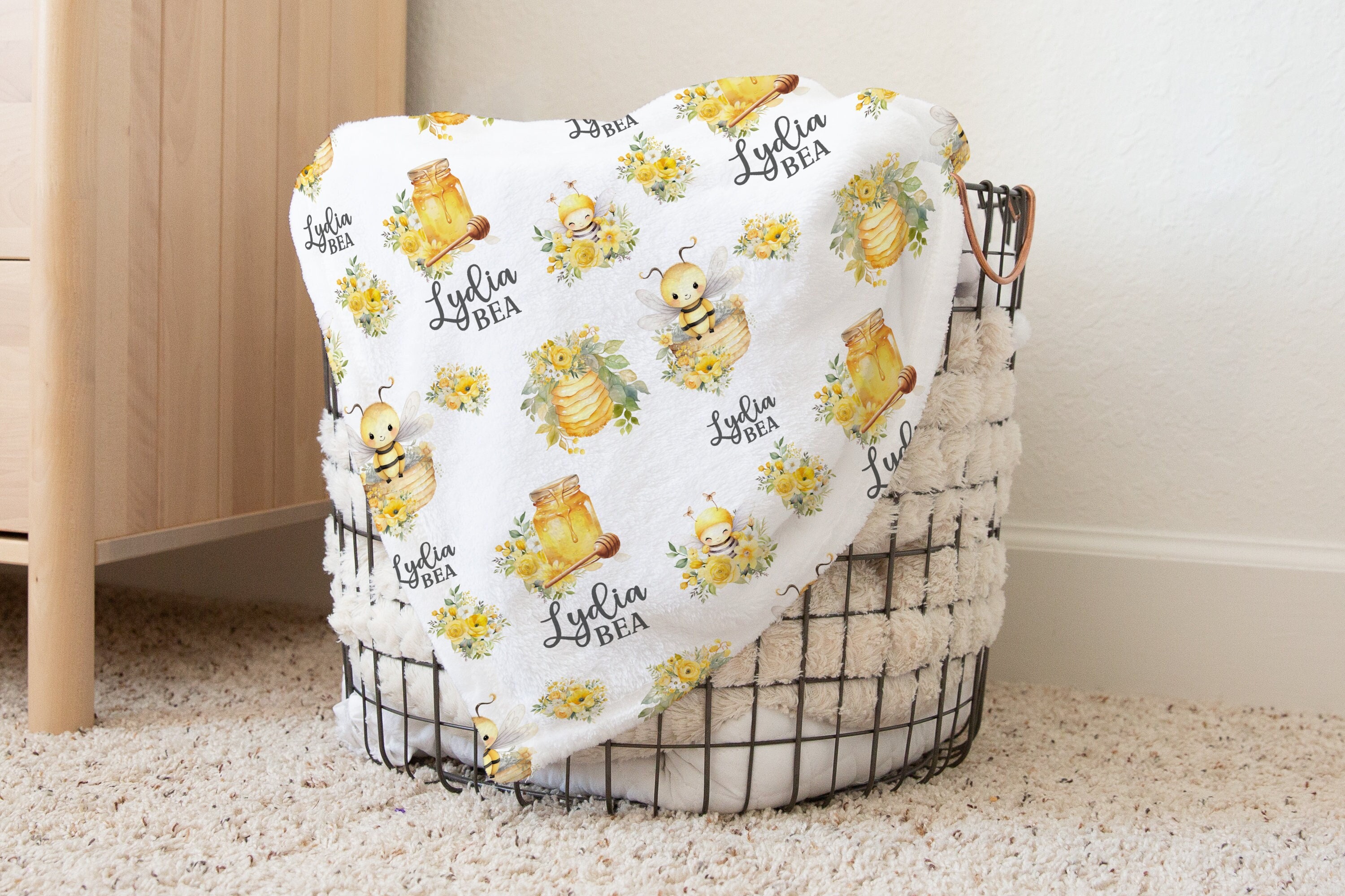 Personalized Honey Bee Blanket, Floral Bumble Bee Blanket, Baby Gir...