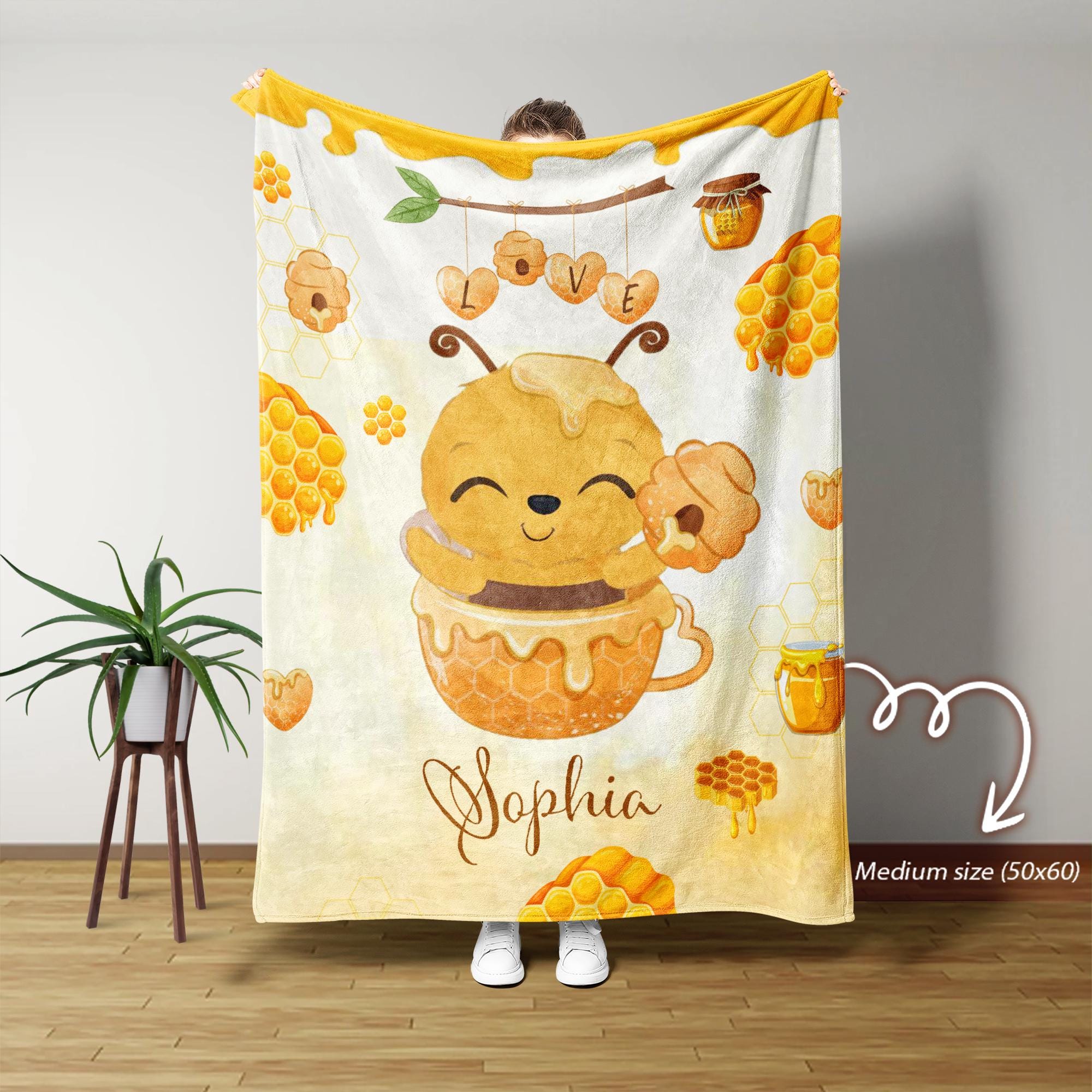 "Cute Honey Bee Personalized Blanket, Honey Bee Blanket, Personalized Name Bee Throw, Warm Bee ...