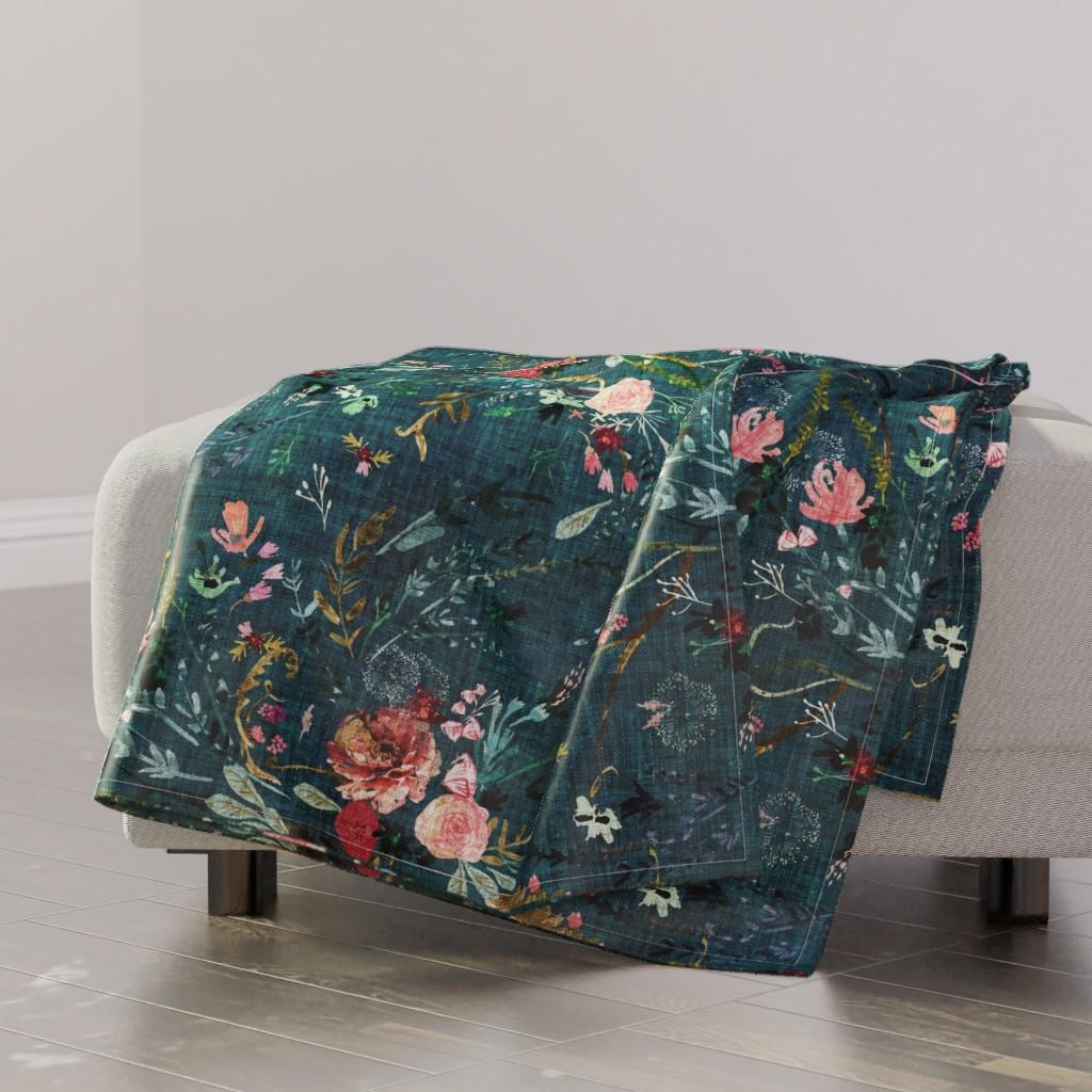Bohemian Floral Throw Blanket - Boho Botanical Feminine Weathered R...