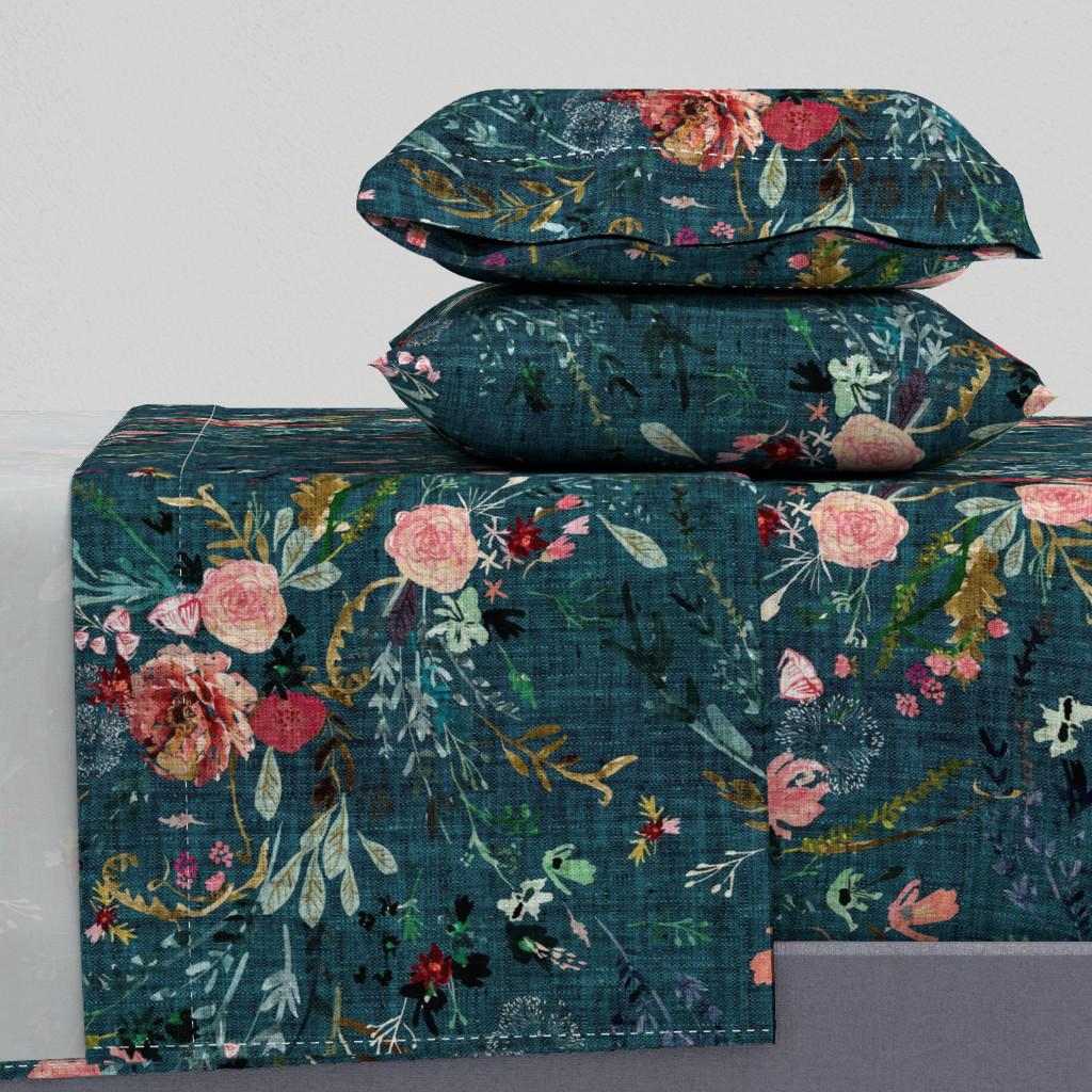 Bohemian Floral Sheets - Fable Floral Teal by nouveau_bohemian - Bo...