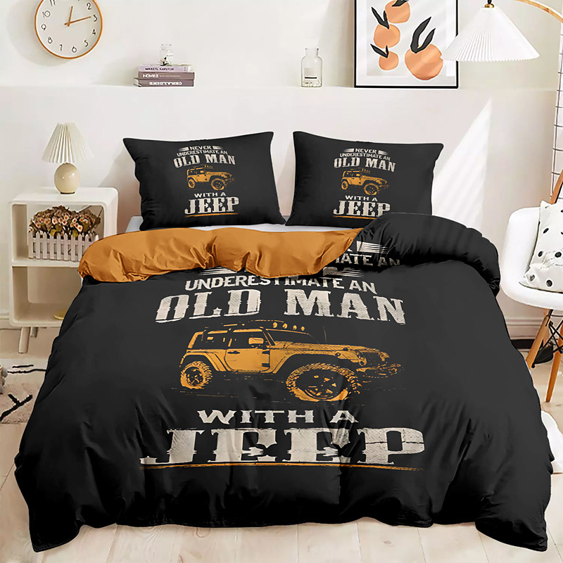 Graphic Car Old Man Duvet Cover Set Vintage Retro Style Soft Durabl...