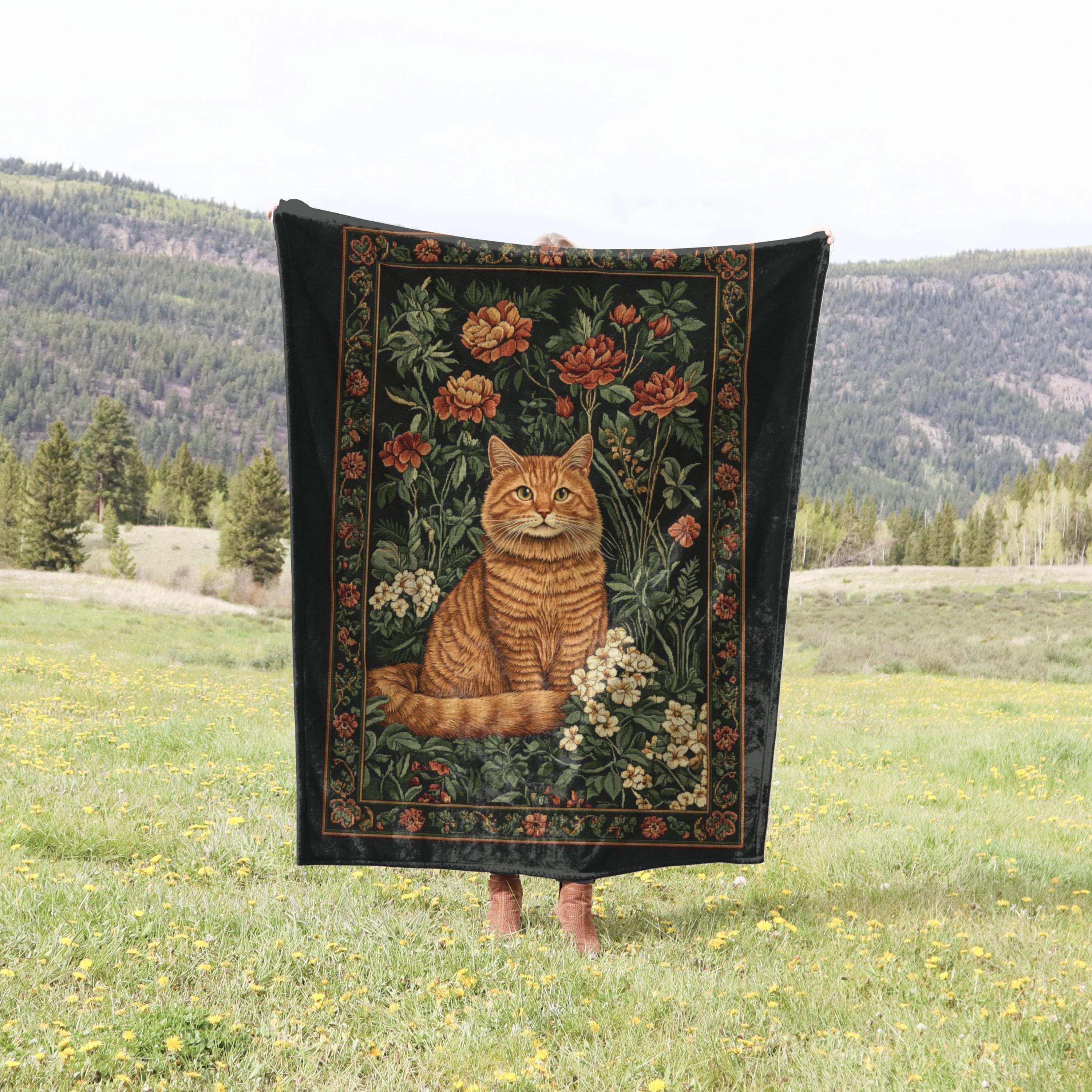 "This floral cat tapestry woven blanket exudes a cozy and artistic vibe, perfect for adding a t...