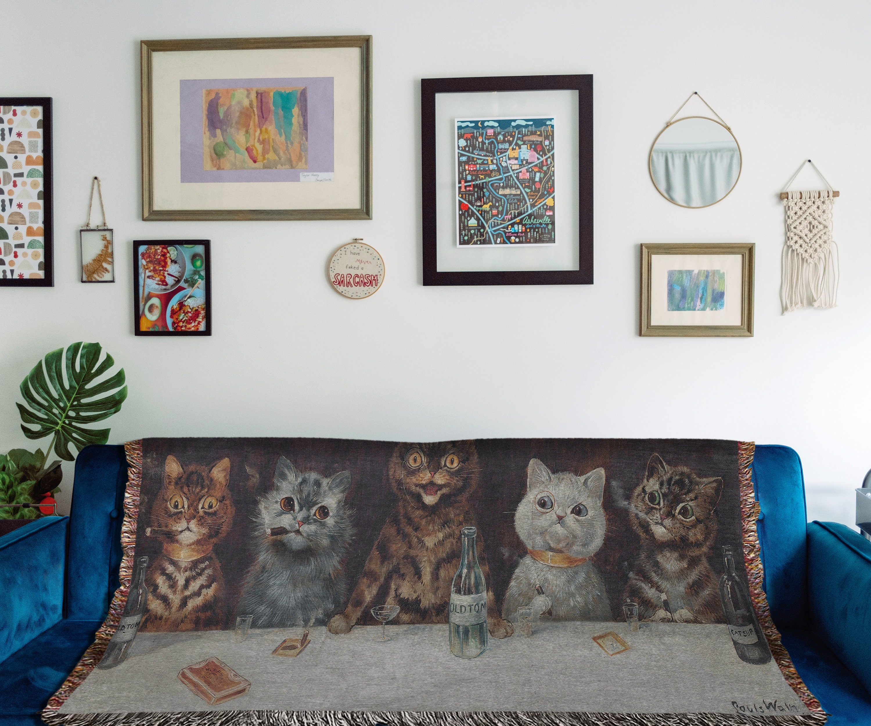 Cat Bachelor Party Woven Throw Blanket: Vintage Woven Cat Tapestry ...