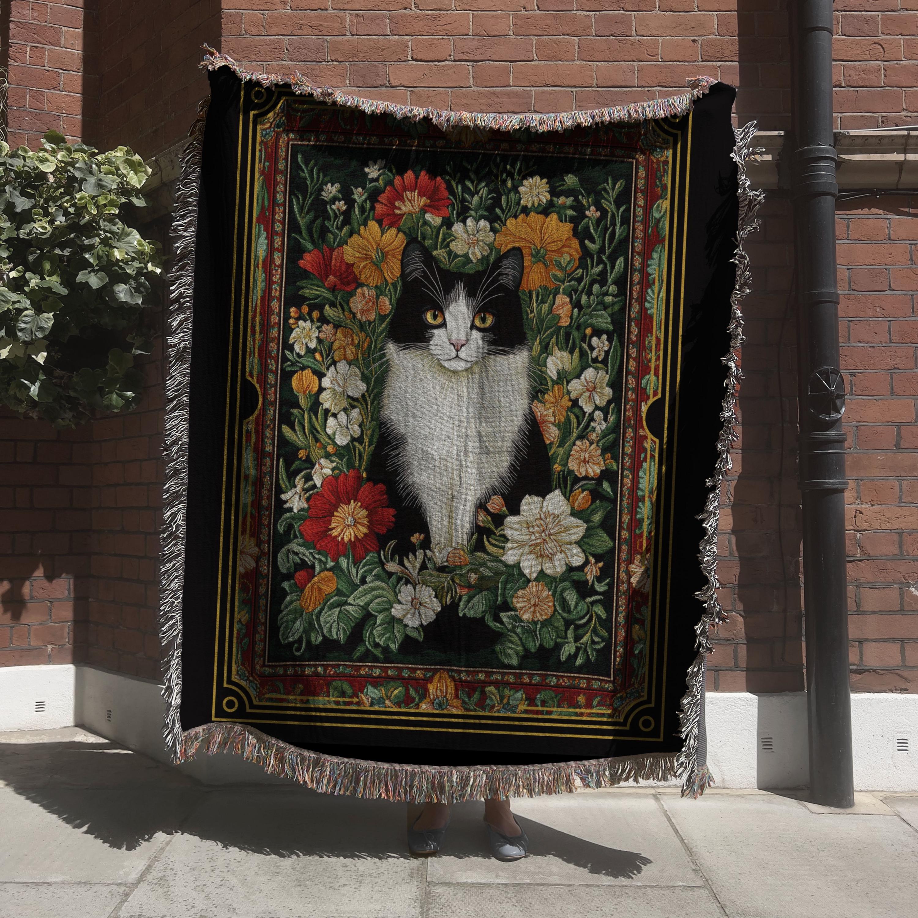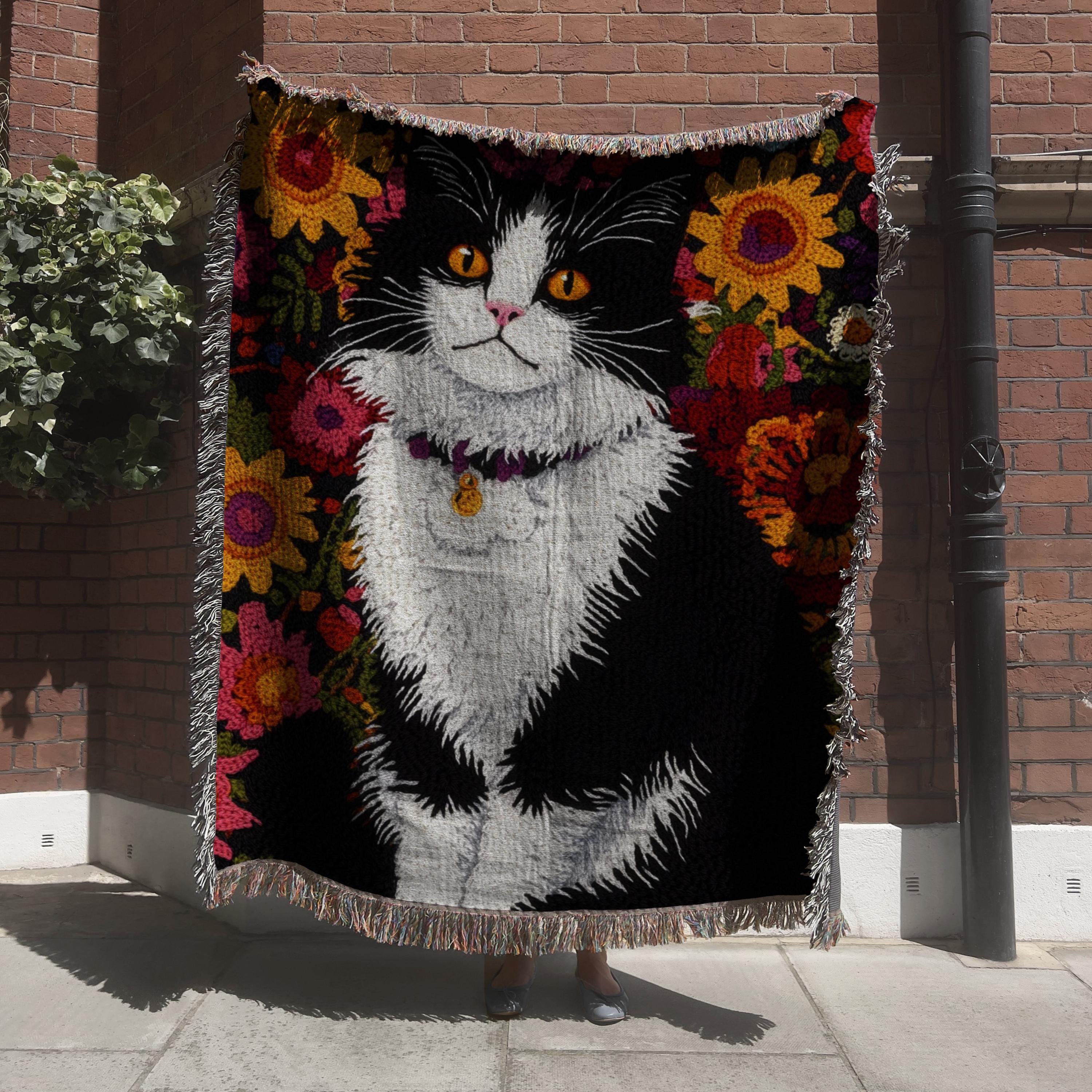 Tuxedo Cat Blanket, Woven Throw Blanket, Cat Lover Gift, Black and ...