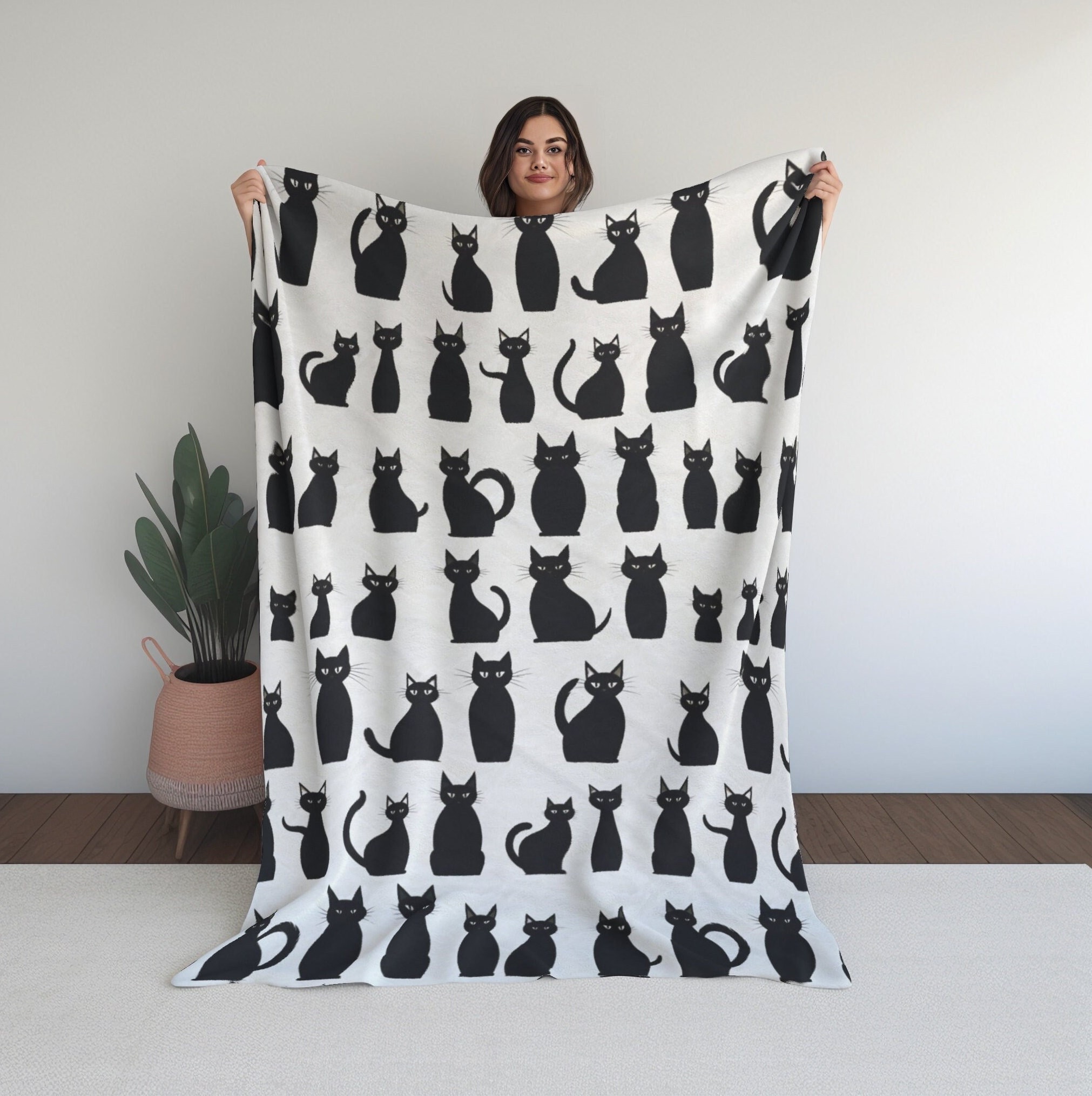 Black Cat Blanket, Gift for Cat Mom, Crazy Cat Lady, Crazy Cat Blan...
