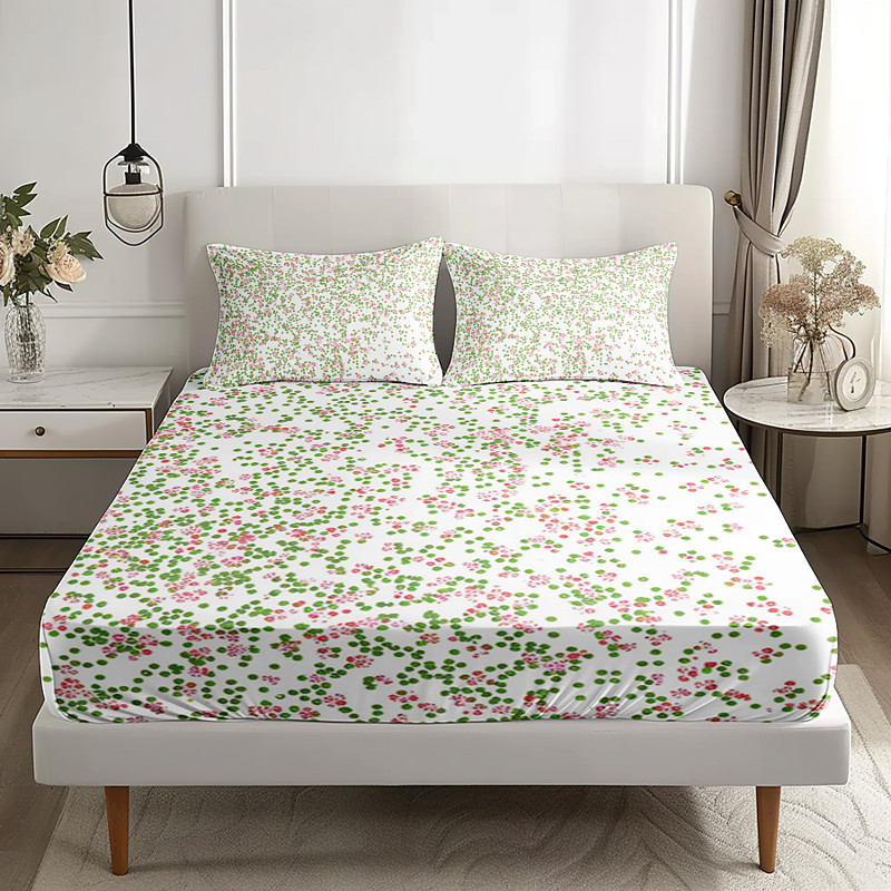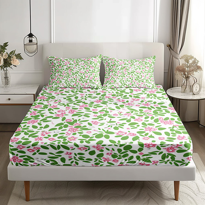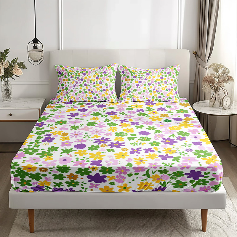 Floral Spring Fitted Sheet Set Ultra Soft Breathable 100% Cotton Si...