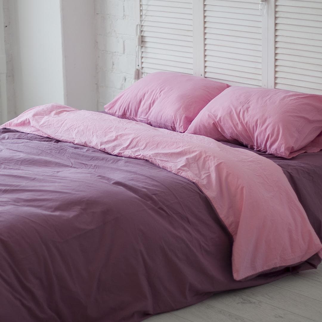 Natural Cotton Double-sided Duvet Cover in Purple and Pink. Twin, F...